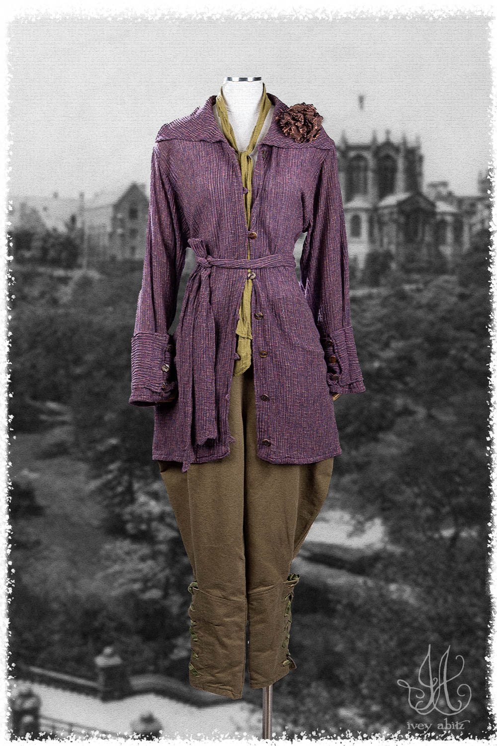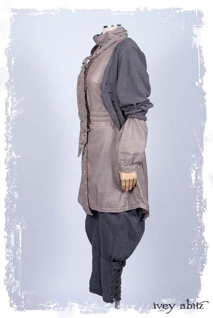 • Especially flattering paired with our longer shirts and dusters over them. Creating a long, vertical line on the body, this juxtaposes well with the roomy, then fitted, silhouette of the trouser legs.