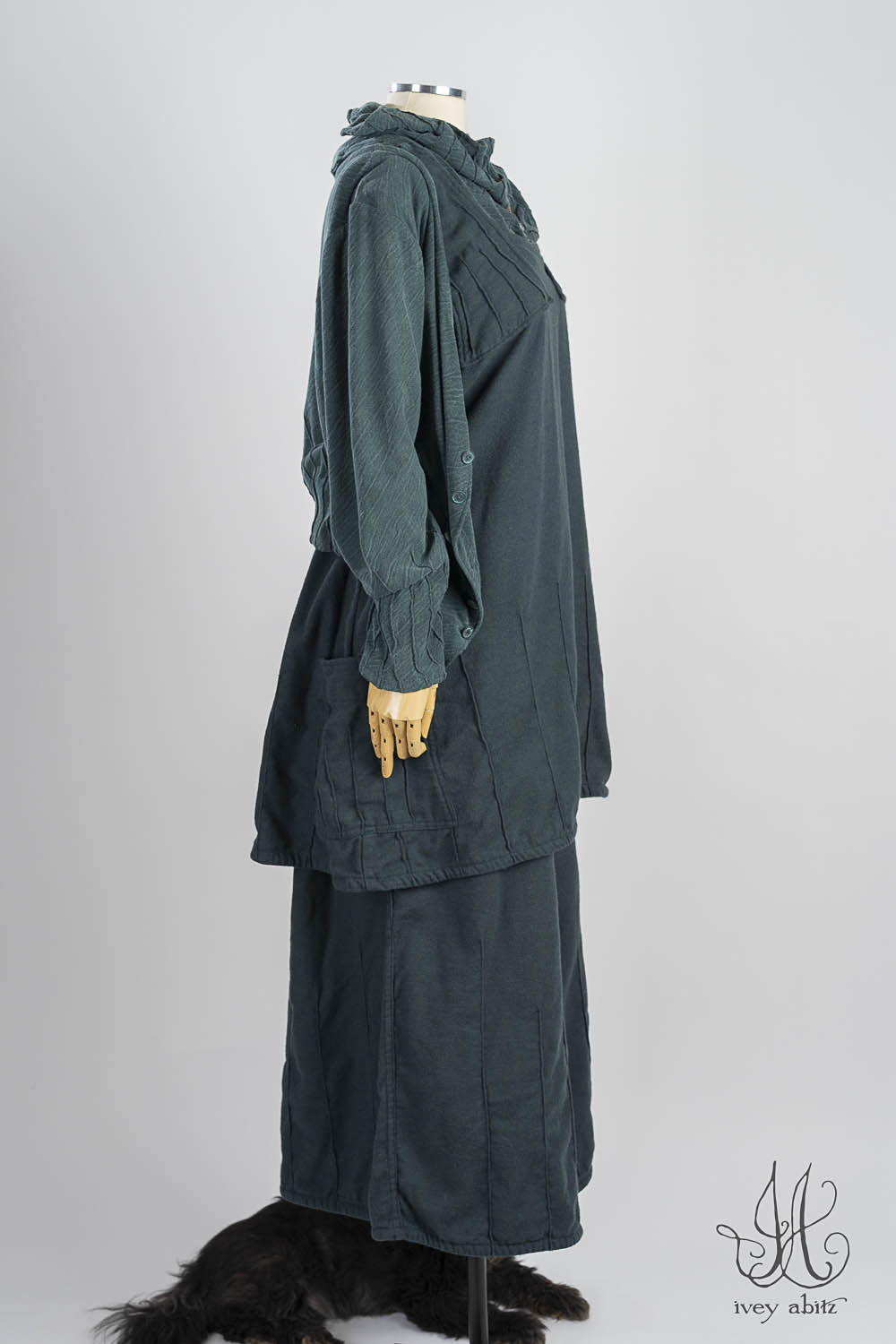 Pairing with the Mercer Frock and Mercer Cardigan are the obvious choices. But the Mercer makes friends with every Ivey Abitz design. Wear them with any Ivey Abitz shirt, under any shorter frock, and under any duster coat.