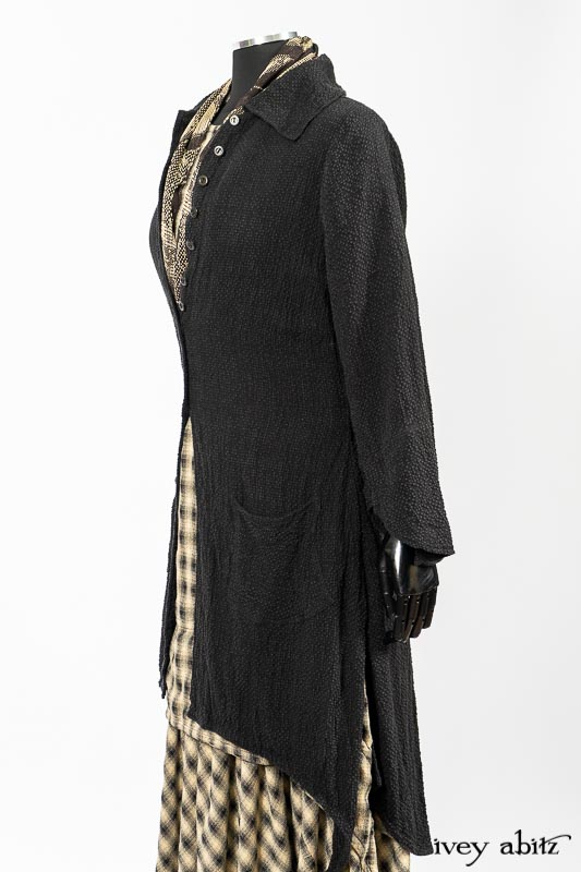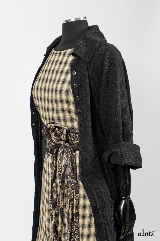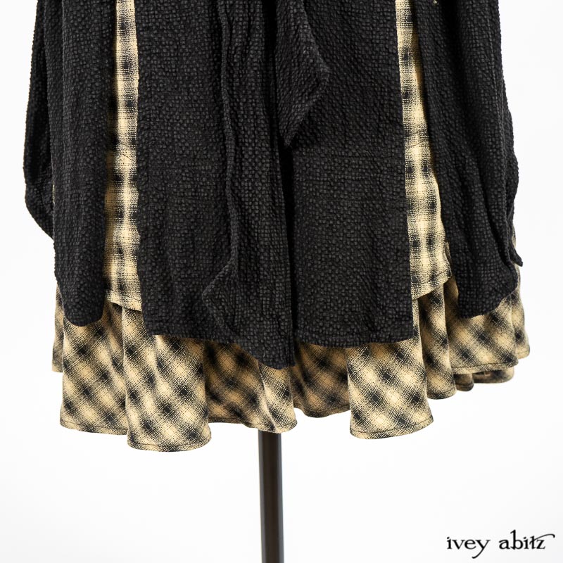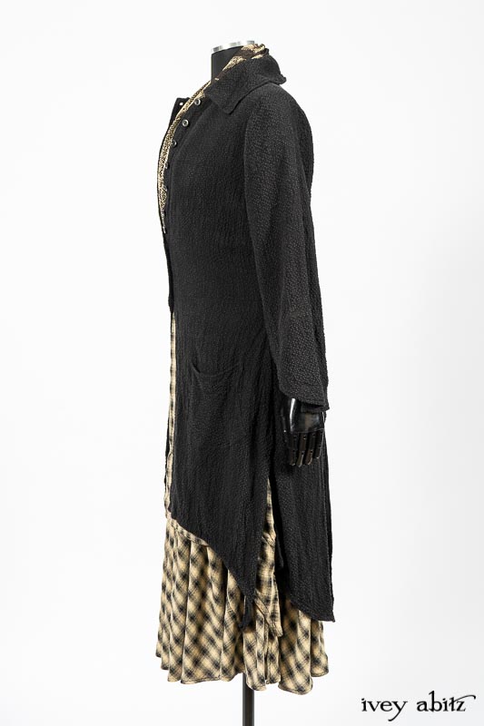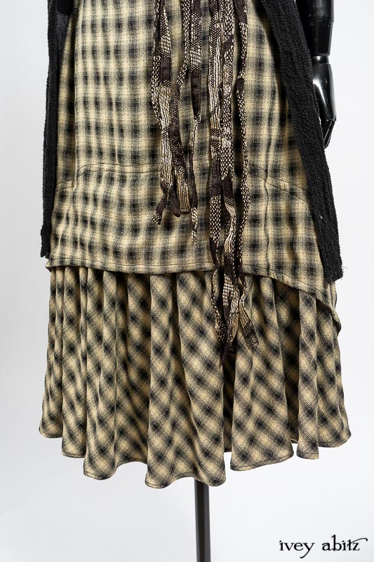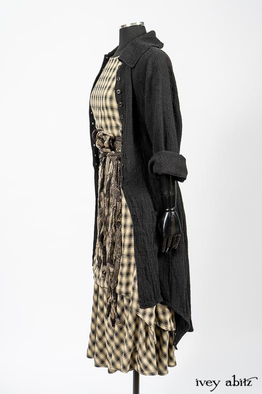 - The frock’s skirting has a lovely curve on the front and back of the bottom hem that echoes many other garments in the Ivey Abitz collection. A perfect frock companion to wear with so many of our designs.