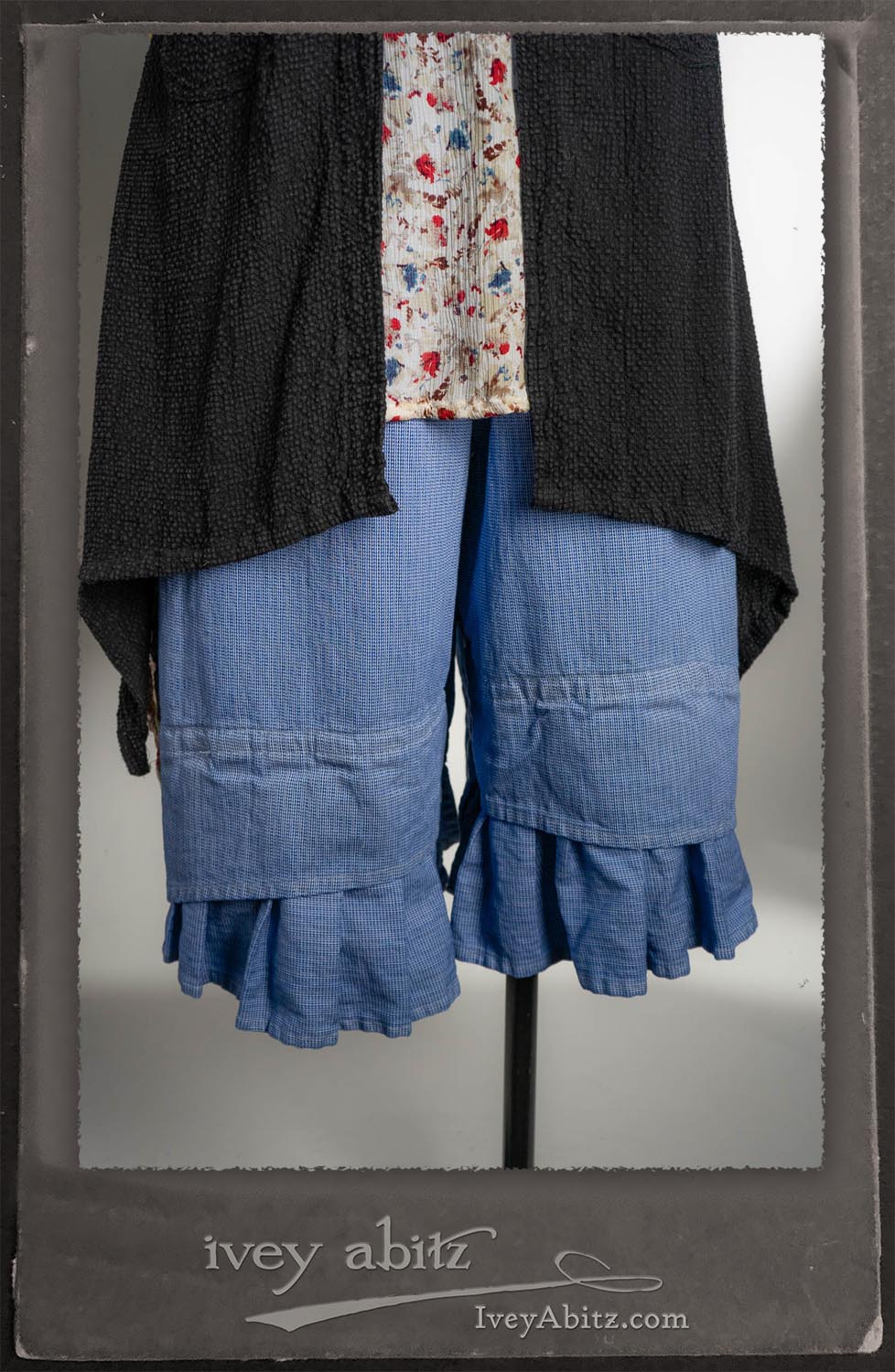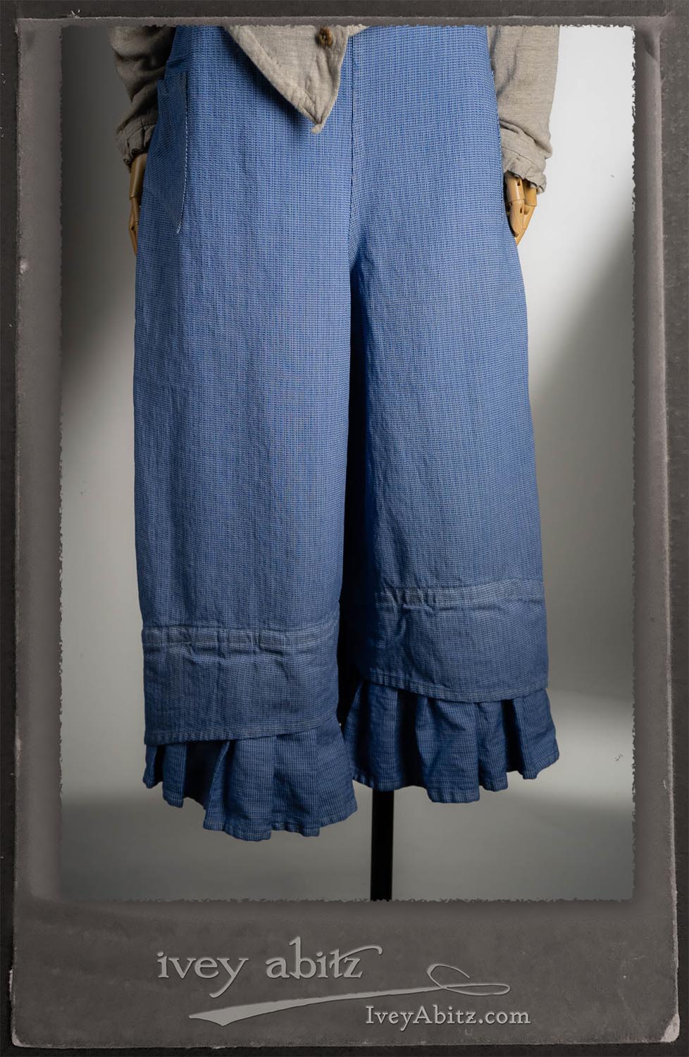 - The trouser’s bottom hems have a lovely curve on the front and back that echoes many other garments in the Ivey Abitz collection.