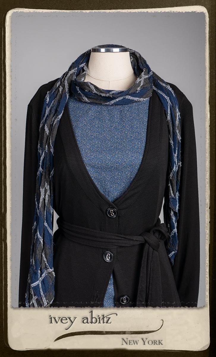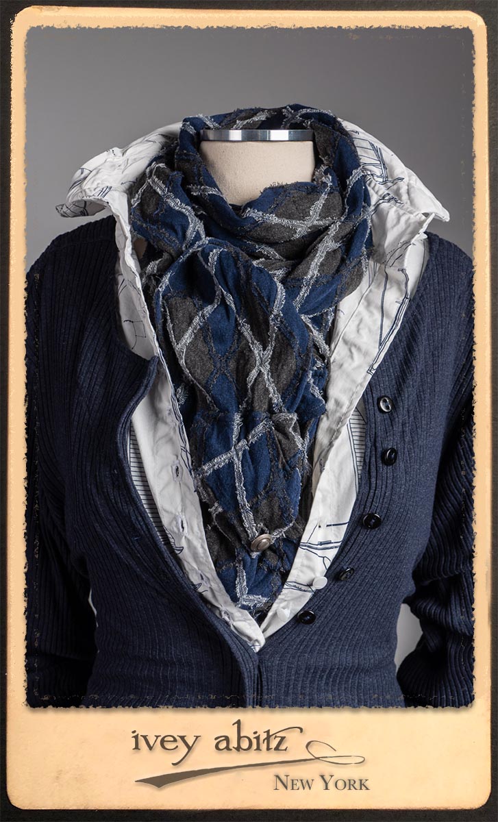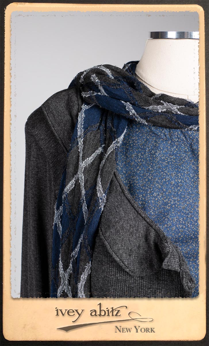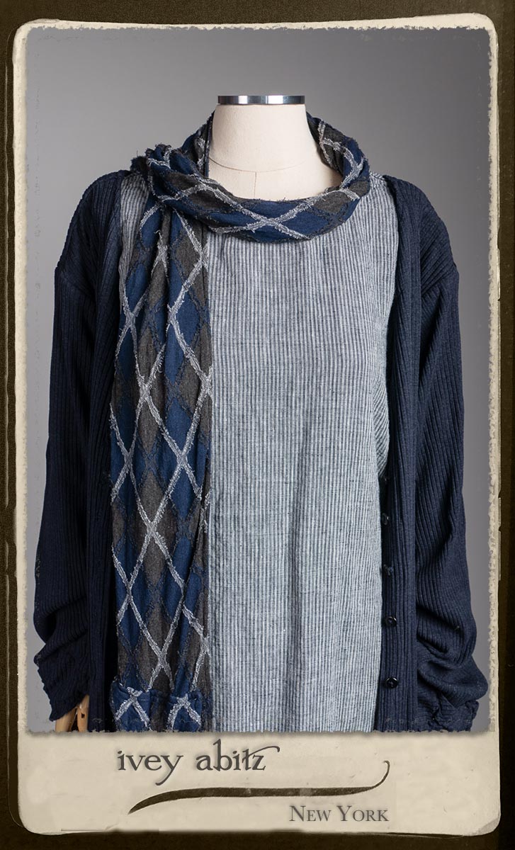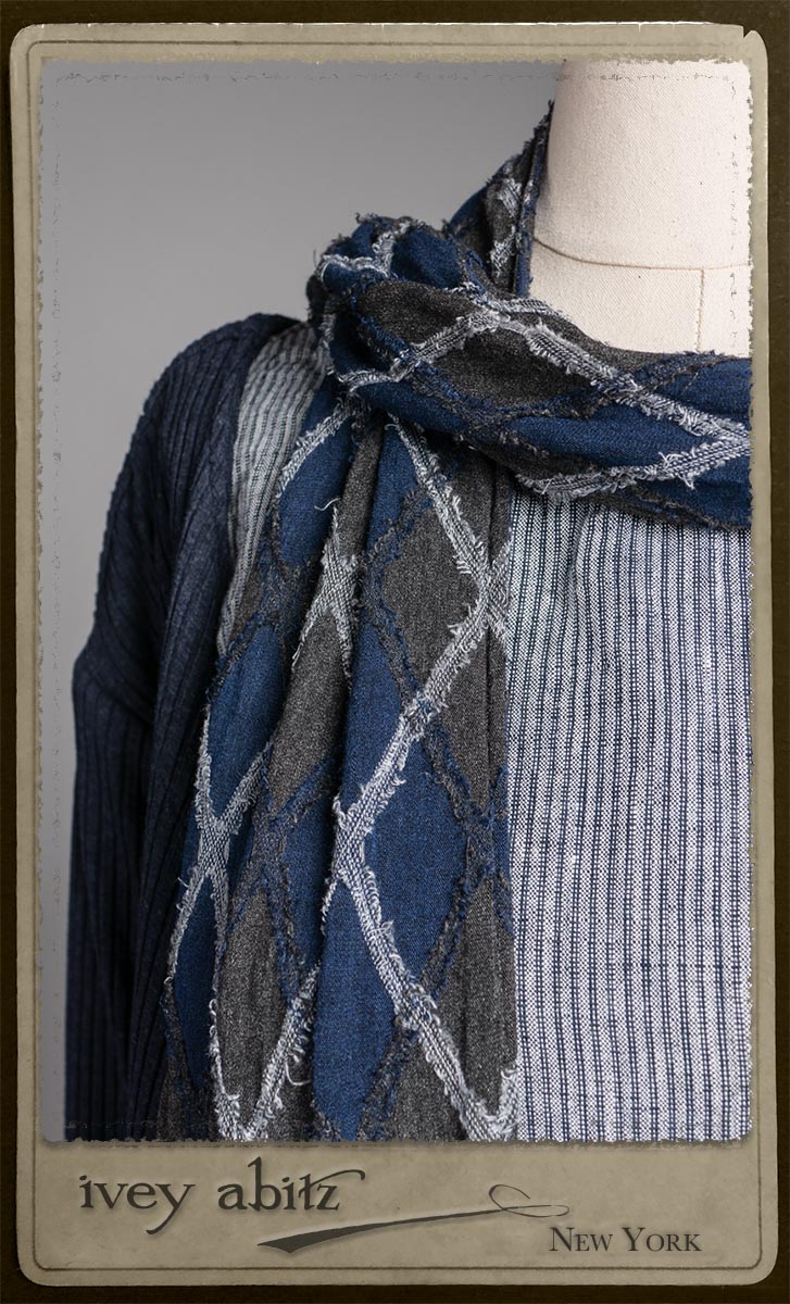 • Viscose weave with raw edged embroidered argyle design across the fabric. Very soft and it’s ever so much fun to feel this softness around the neck.