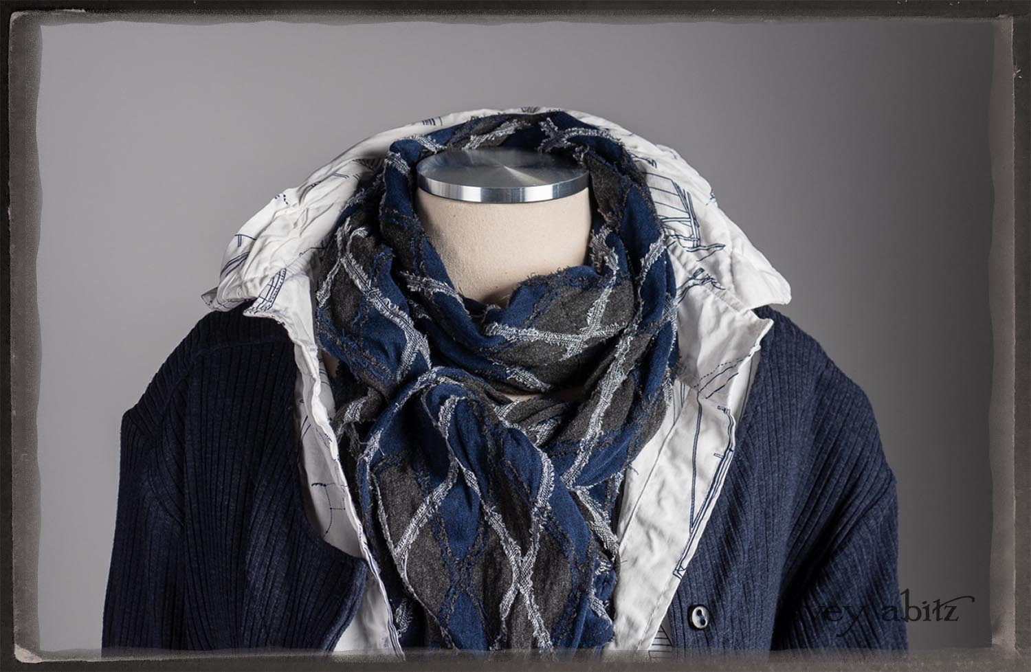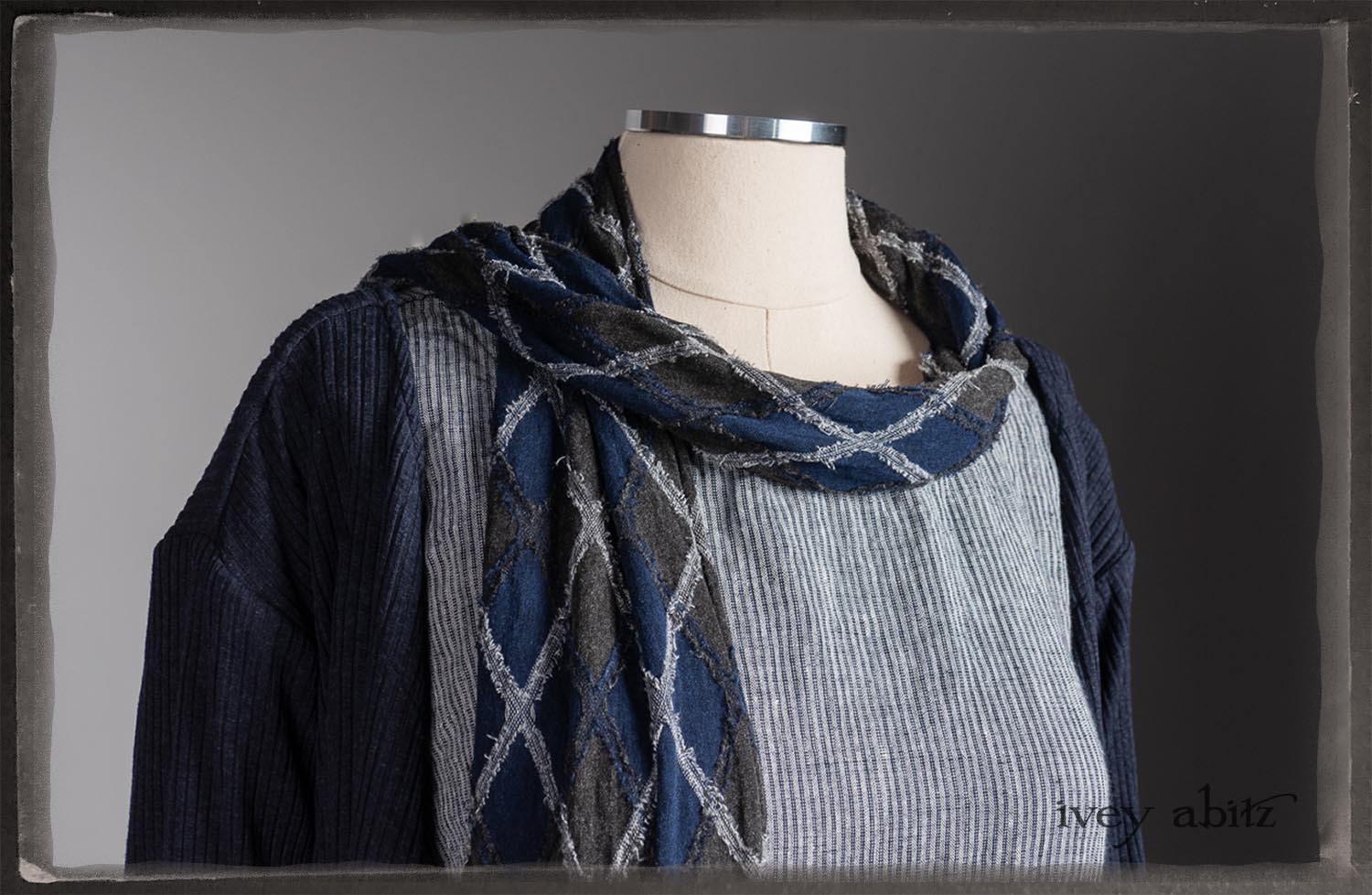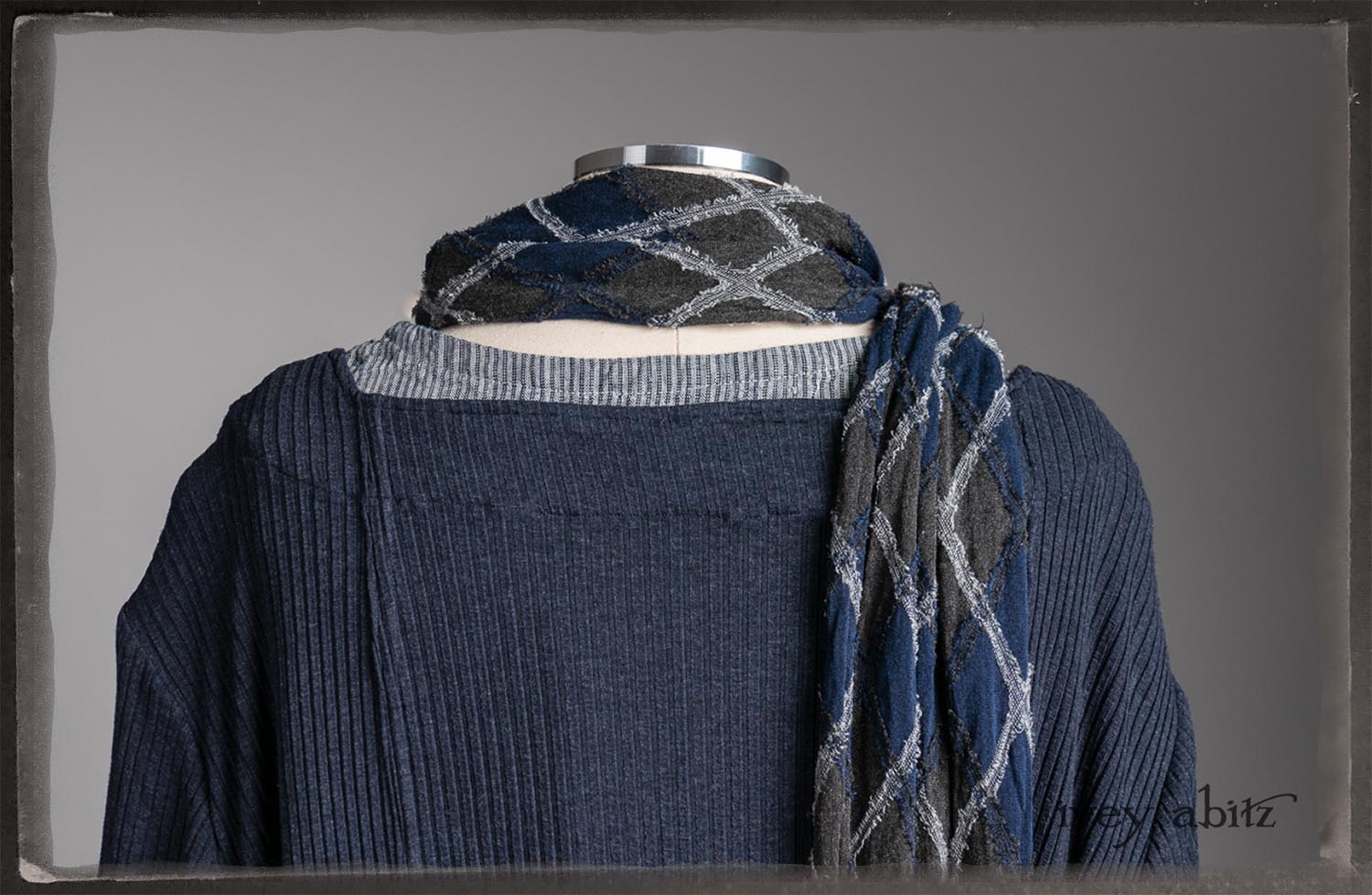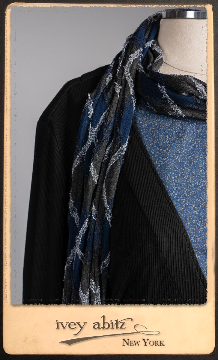 • Viscose weave with raw edged embroidered argyle design across the fabric. Very soft and it’s ever so much fun to feel this softness around the neck.