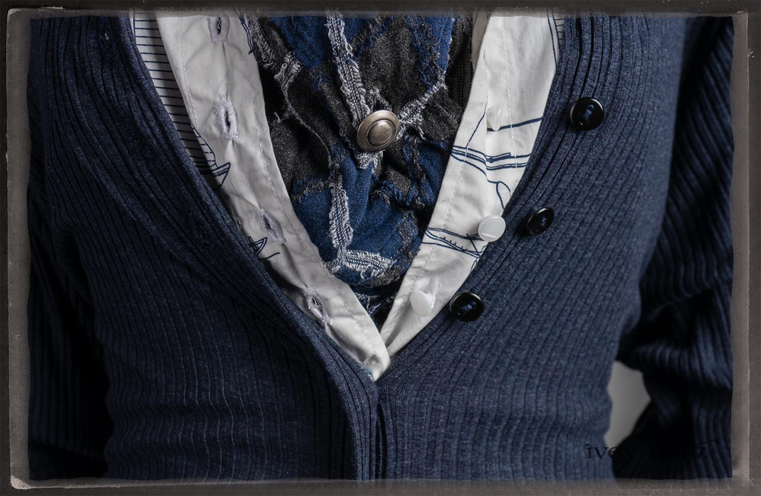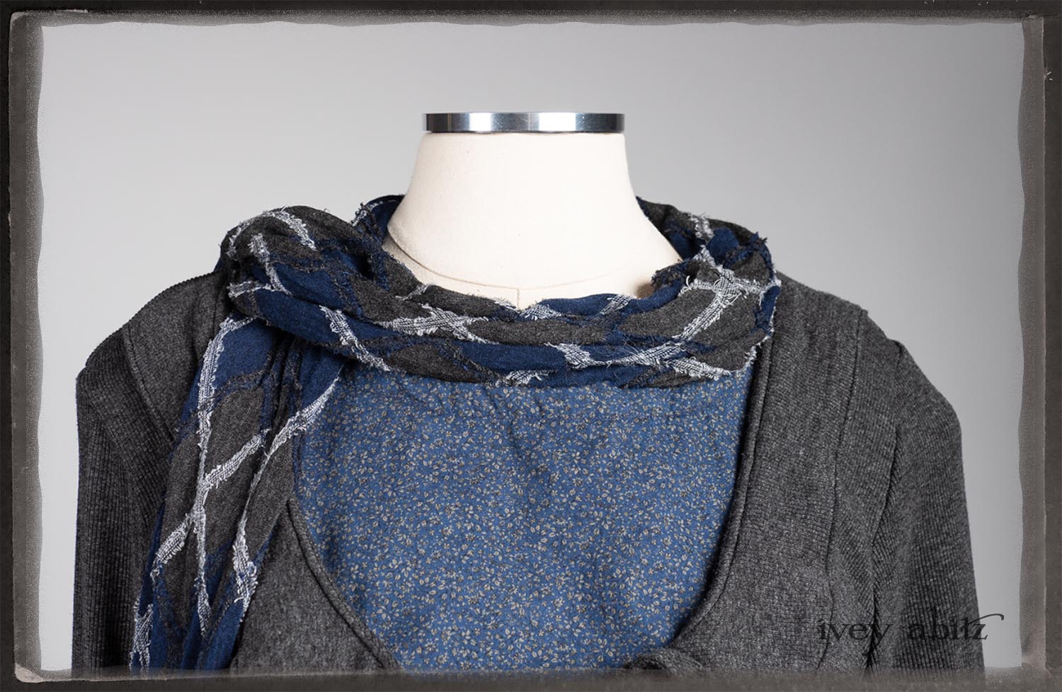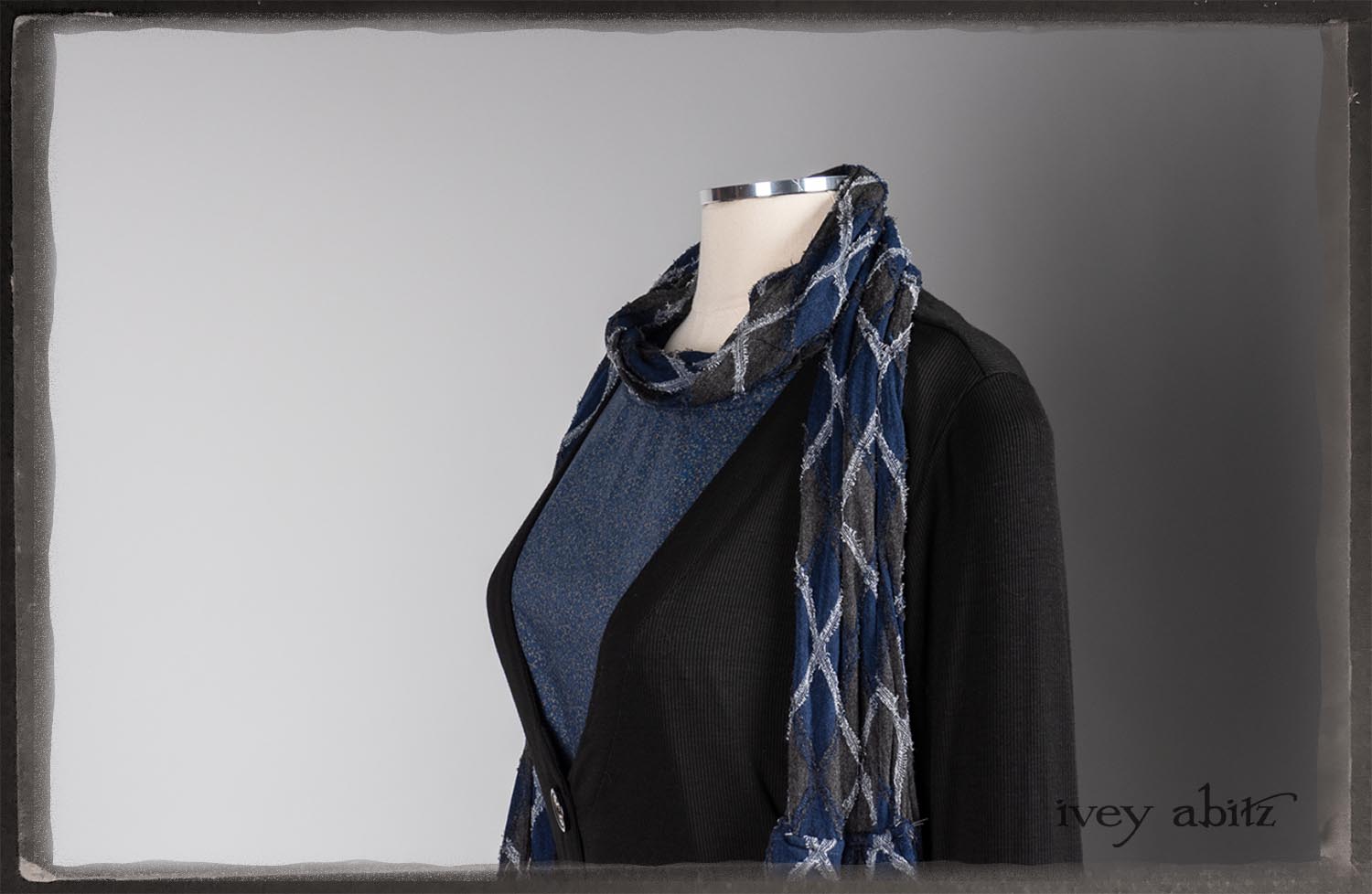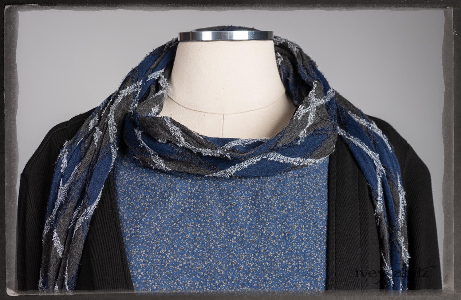 • Viscose weave with raw edged embroidered argyle design across the fabric. Very soft and it’s ever so much fun to feel this softness around the neck.