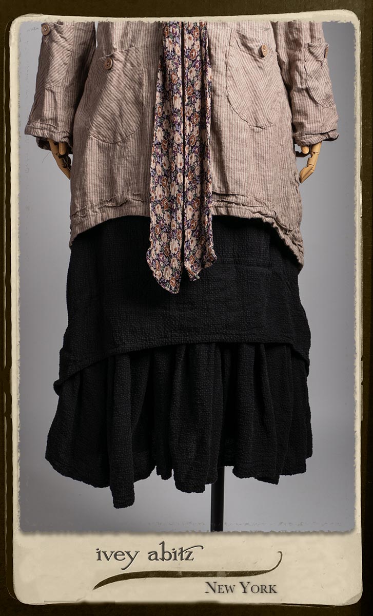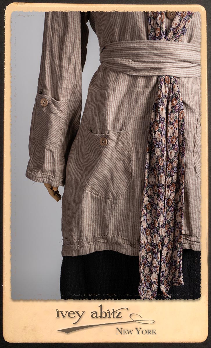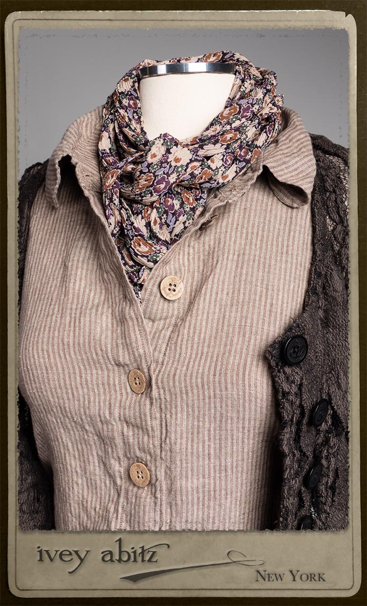 100 percent silk woven in Italy has a wonderful crinkled effect in it. It’s a perfect traveling and everyday wear companion.