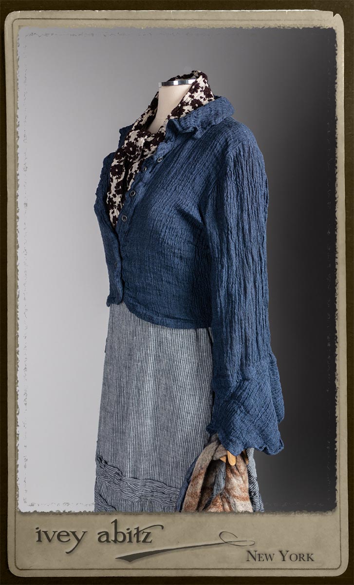 • Our short jackets are the new quintessential, must-have items in an Ivey Abitz wardrobe. They are an ideal choice to wear over our sleeveless frocks as it gives you coverage on the arms, as well as a bit of texture and contrast in an ensemble, without the length of a duster coat. The shorter jackets create such a flatter silhouette on any frame.