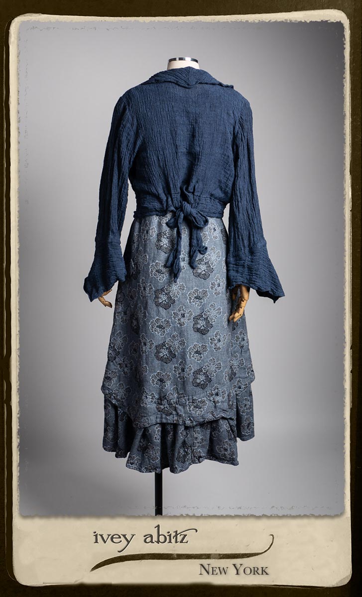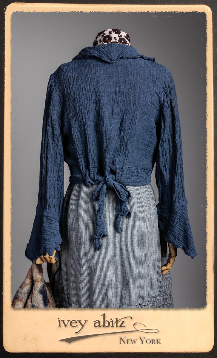 • The back of the jacket has an encased tie so you can adjust the fit in an instant. Wear loose and unbuttoned as relaxed and casual cardigan-like jacket. Cinch in the comfortable back tie and button just below the bust line for a unique jacket that gives you support and coverage from the bodice up.