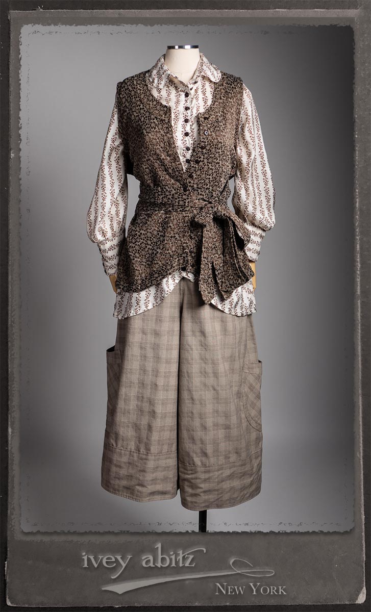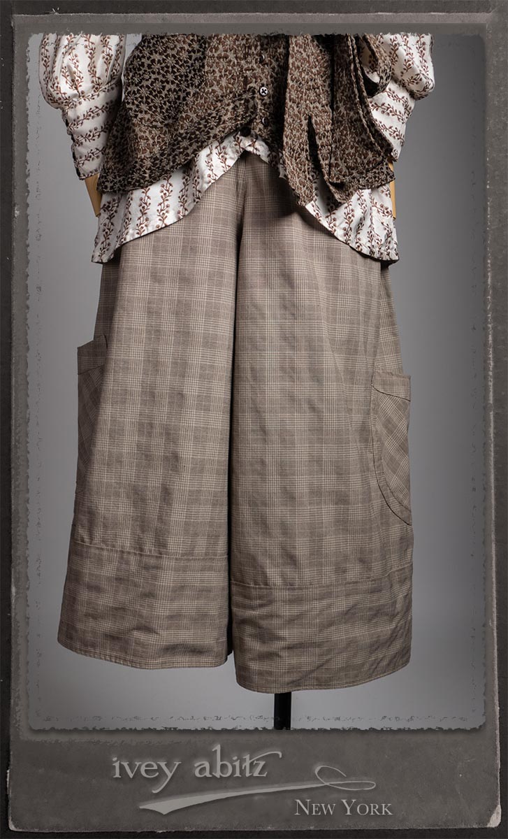 • As with all of our trousers, which are so comfortable and have the easiest fit you’ll ever wear, the Montagues have an extra elongated front and back rise. They give you the ease of a trouser and the sweeping flattering look of a skirt. You’ll no longer have the uncomfortable creeping-of-the-trouser-into-unsightly-places affliction with the fit of our comfortable trousers. They have a respectable and elegant drape. They are meant to be relaxed, a-line, and FUN.