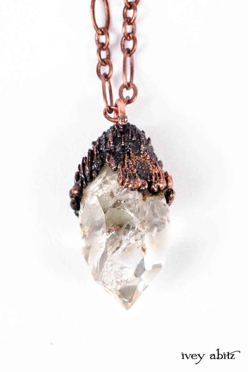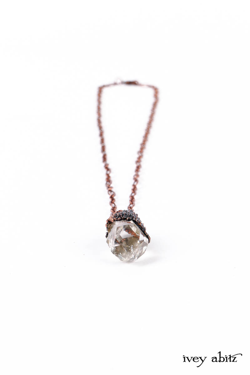 We are collaborating with a wonderfully kind and talented jewelry artist named Dori who mines for the Herkimer Diamonds herself with a sledge hammer and chisel. Then, she makes them into necklaces using a rustic copper setting and chain.