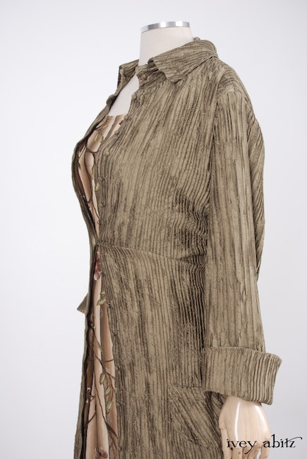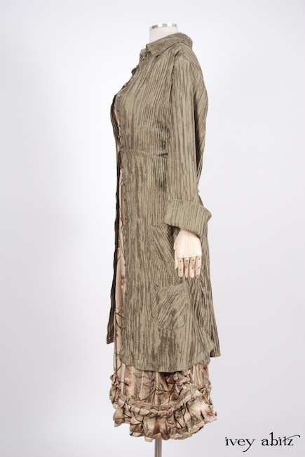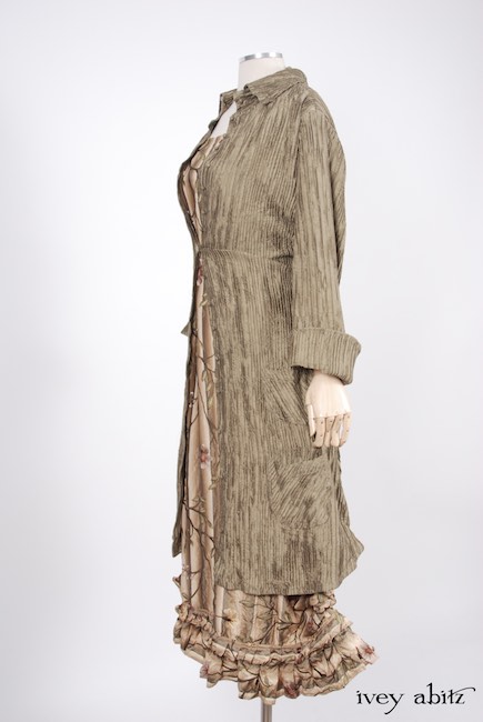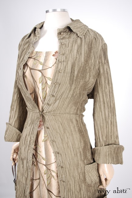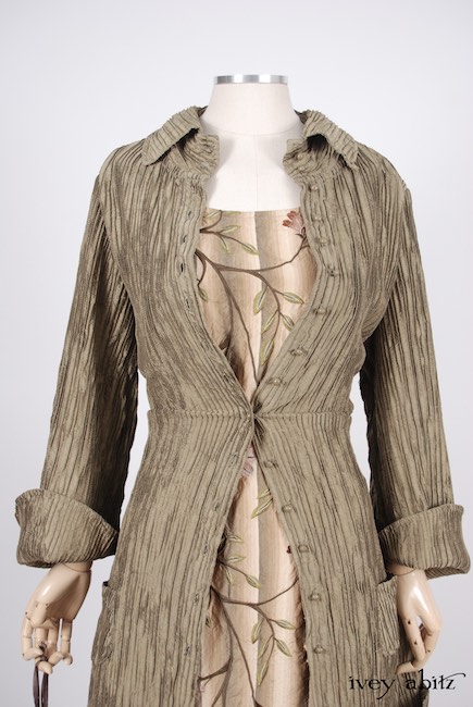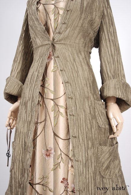Look 1 - Spring 2018 Ivey Abitz Bespoke - Phinneus Coat Dress in Lawn Washed Pintuck Silk; Canterbury Frock in Original Plaster Embroidered Washed Silk, High Water Length - Ivey Abitz bespoke clothing