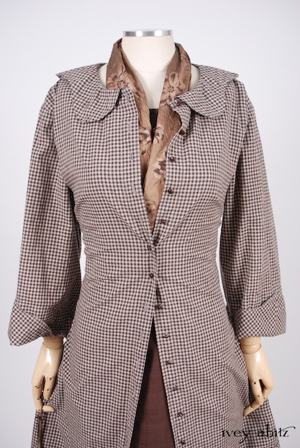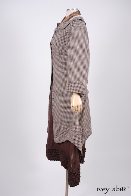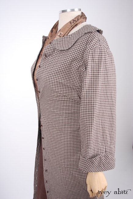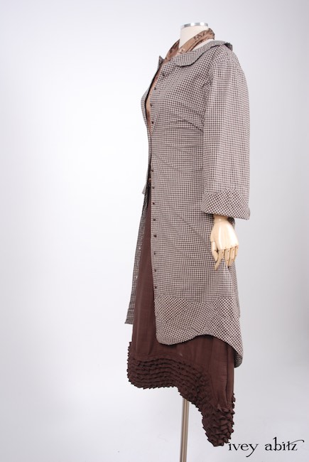- Grasmere Duster Coat in Brownstone Banister Checked Cotton