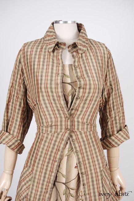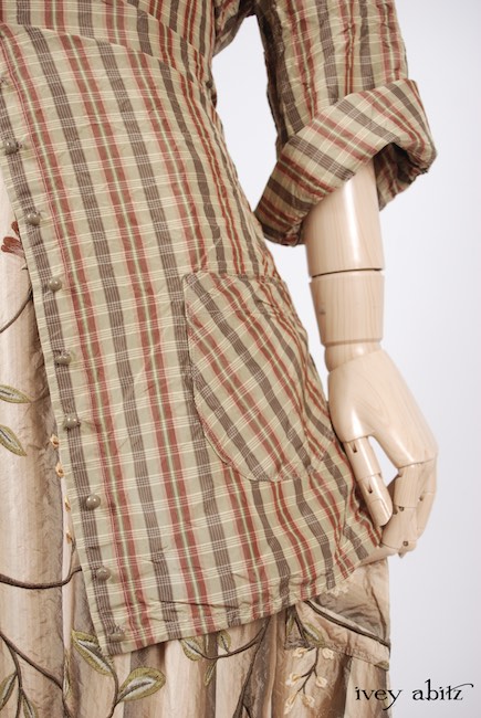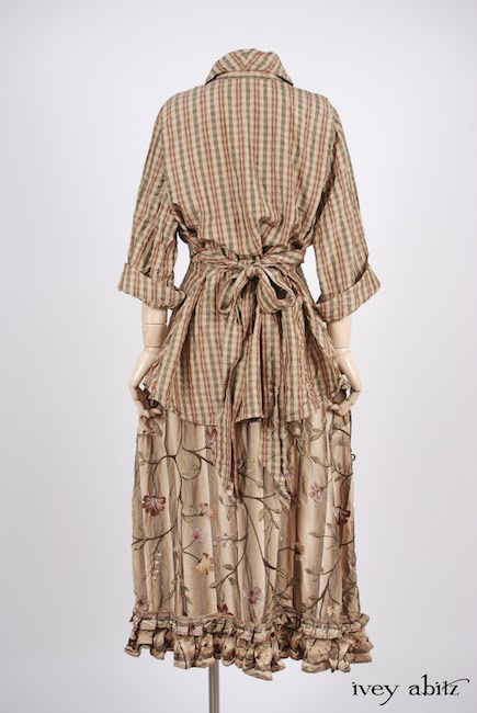- Canterbury Frock in Original Plaster Embroidered Washed Silk, High Water Length