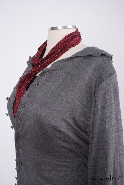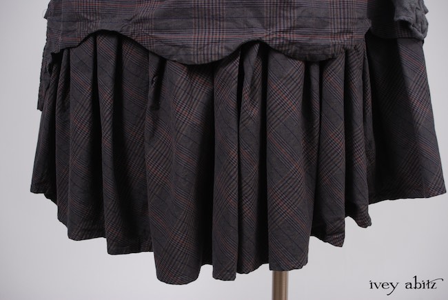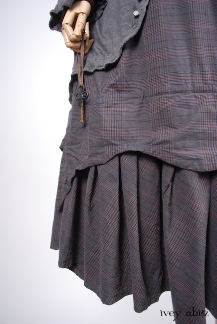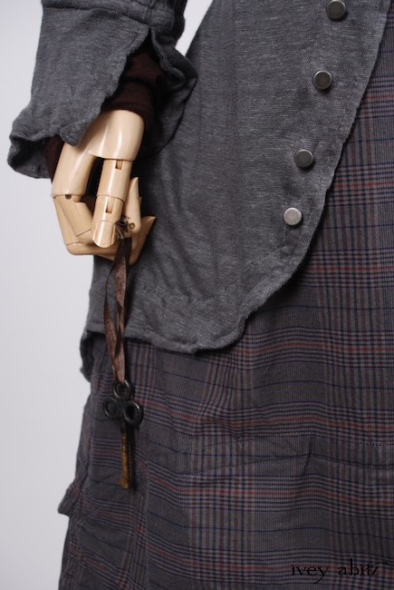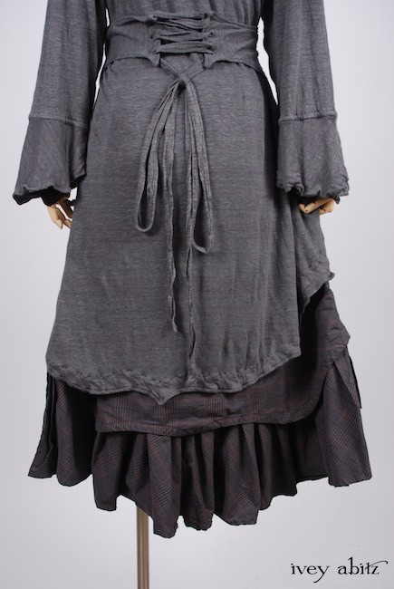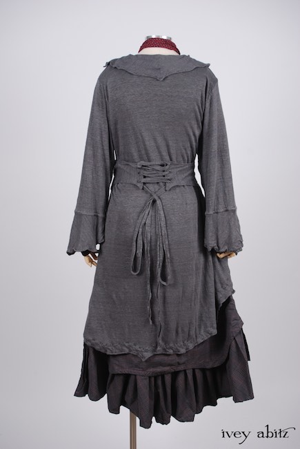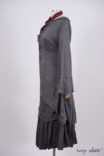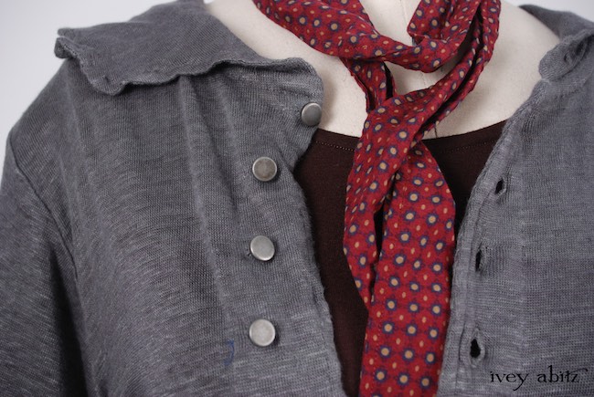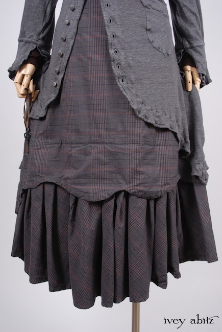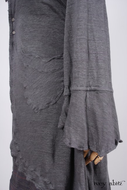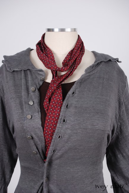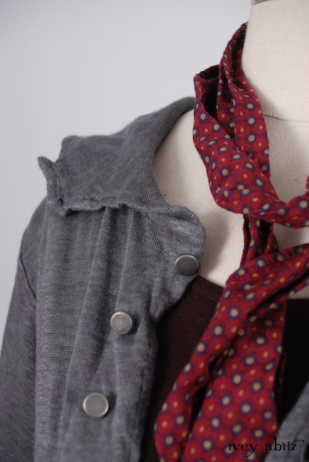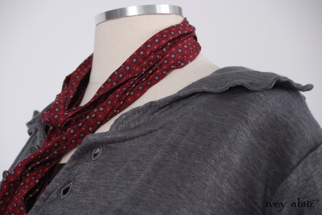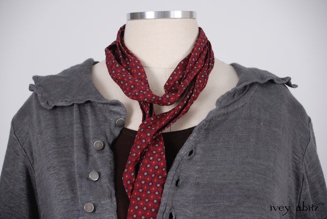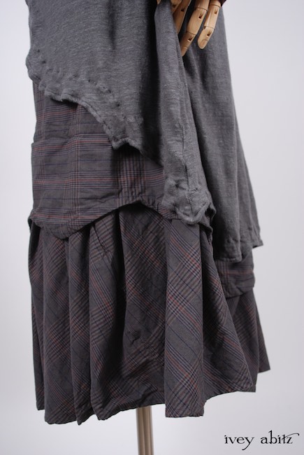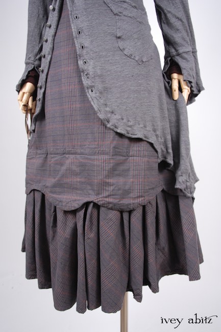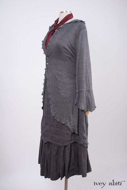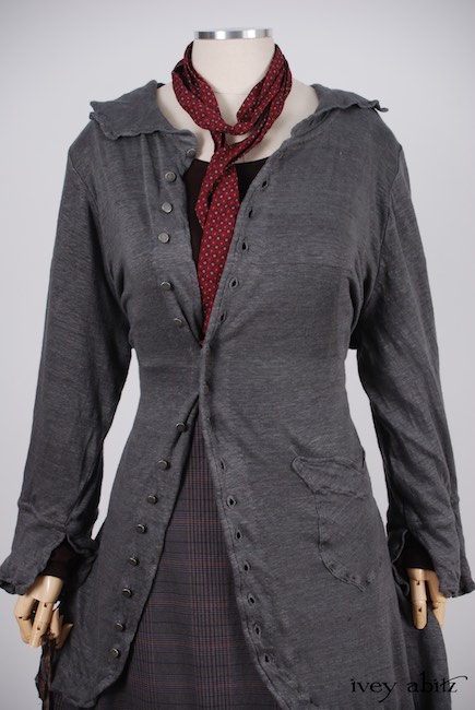Look 28 - Spring 2018 Ivey Abitz Bespoke - Heraldry Duster Coat in Front Gate Lightweight Linen Knit; Sophia Necktie in Red Door Stained Glass Voile; Cilla Camisole in Chimney Lightweight Linen Knit; Heraldry Skirt in Front Gate Sturdy Plaid Poplin.