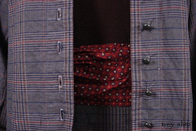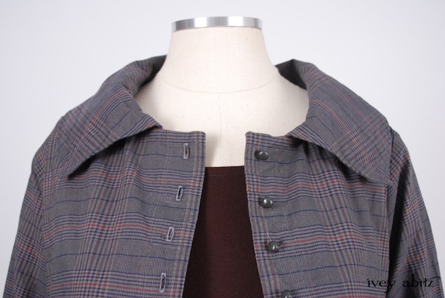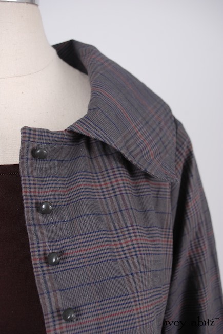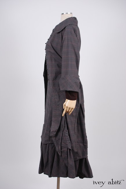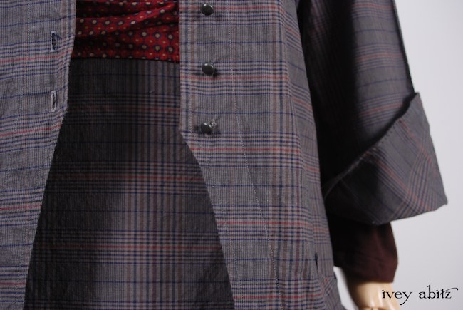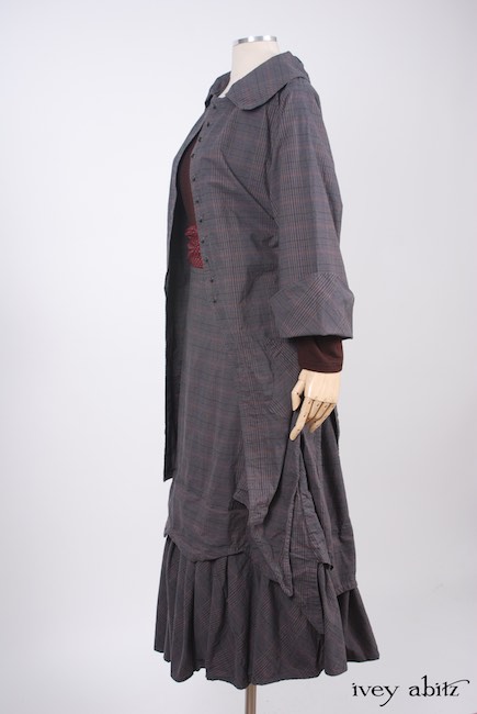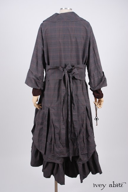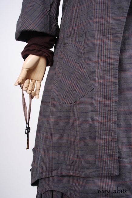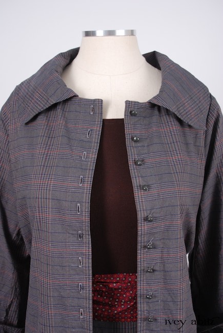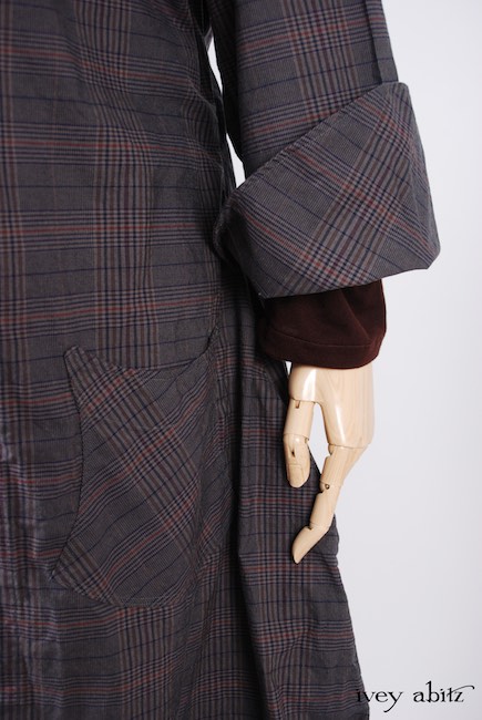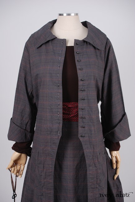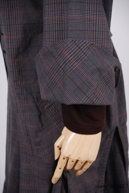 - Elsie Duster Coat in Front Gate Sturdy Plaid Poplin; Elliot Shirt in Brick Soft Knit
