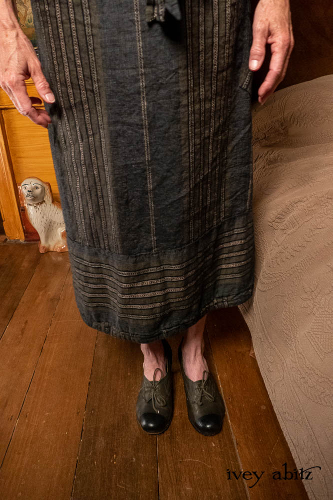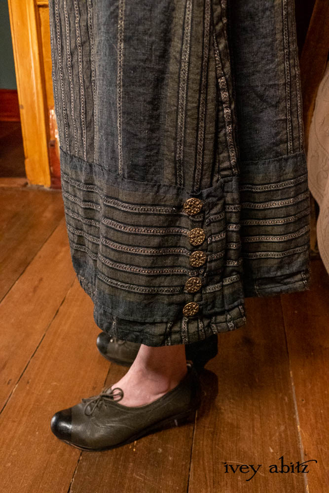 • Viv Frock in Olive Quartz Embroidered Stripe Weave
