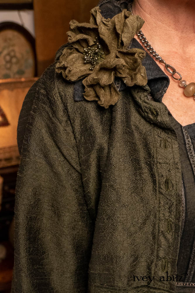 • Eugenia Jacket in Olive Quartz Washed Textured Silk