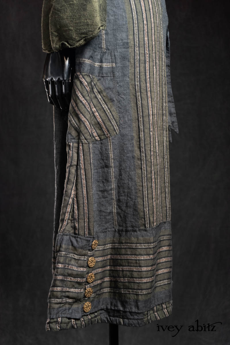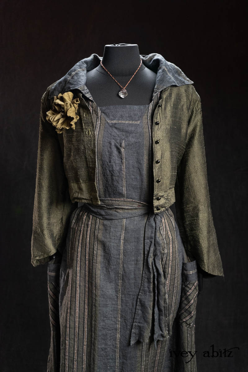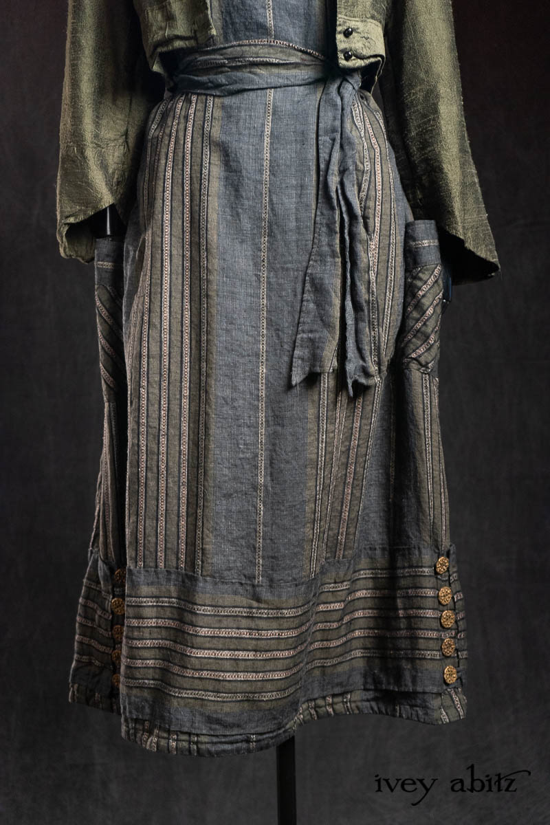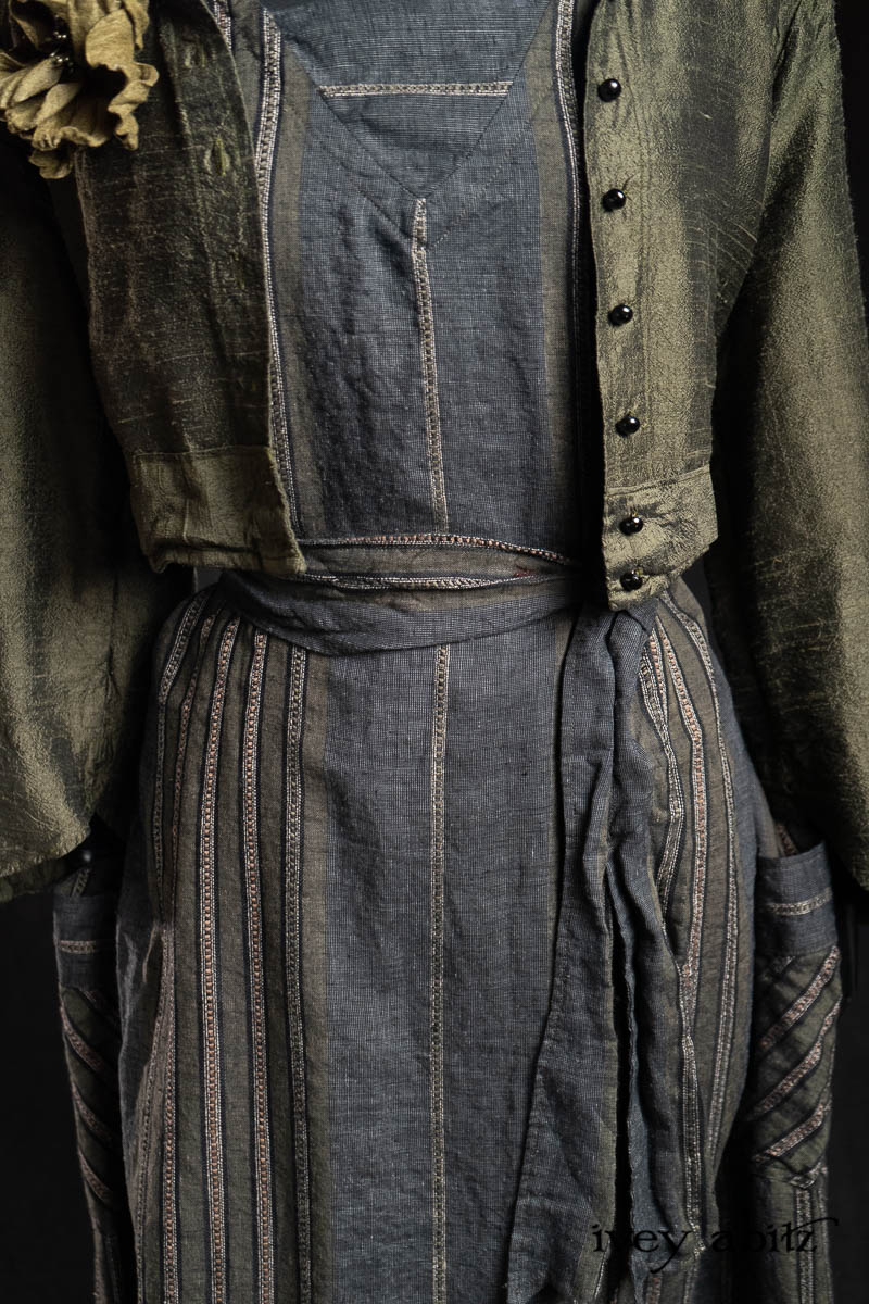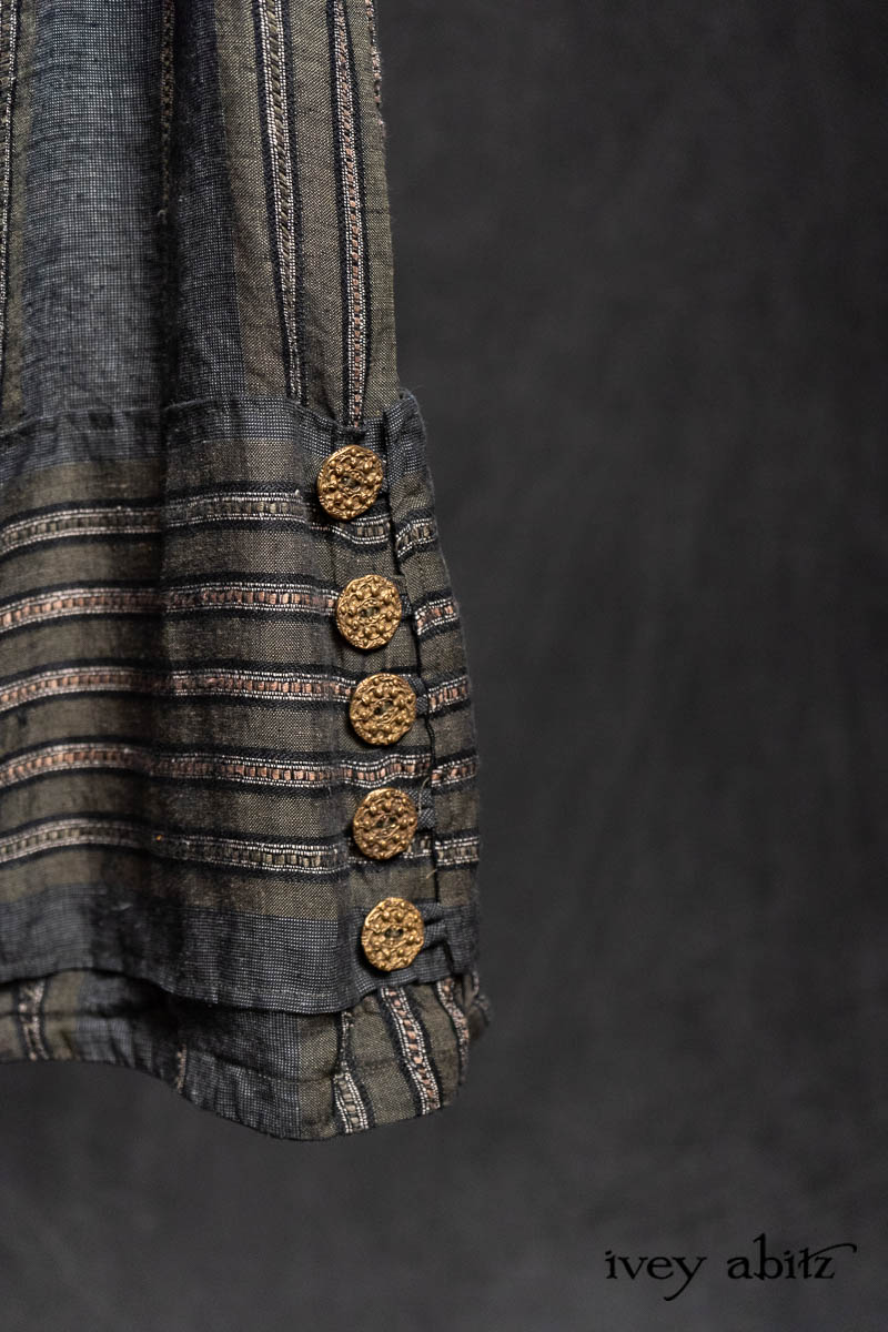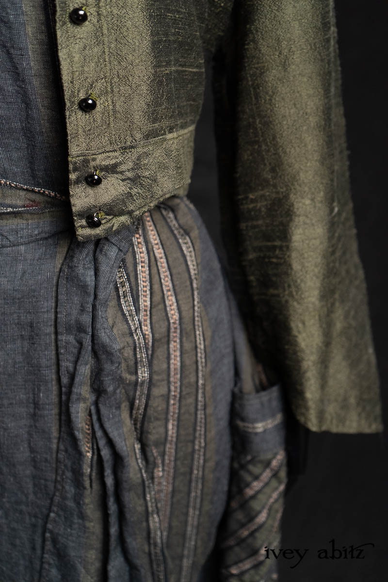 - Viv Frock in Olive Quartz Embroidered Stripe Weave