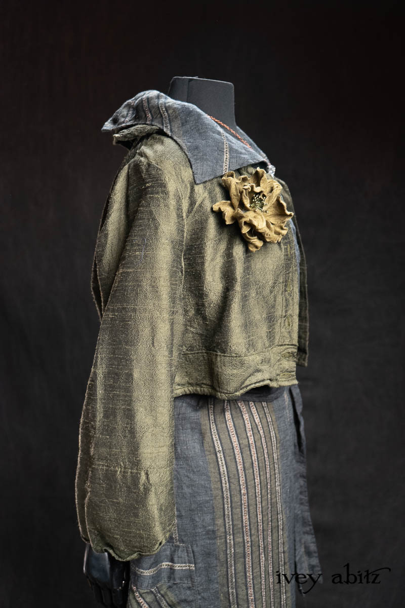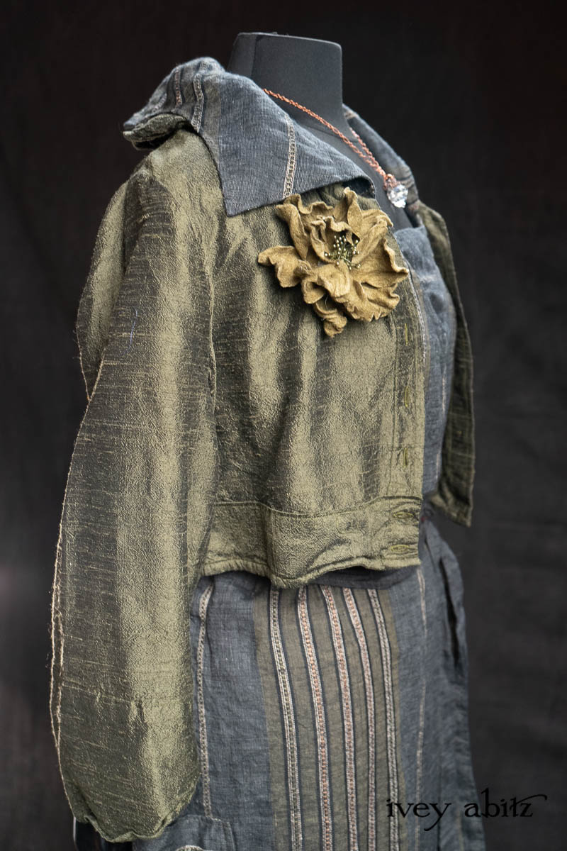 - Eugenia Jacket in Olive Quartz Washed Textured Silk