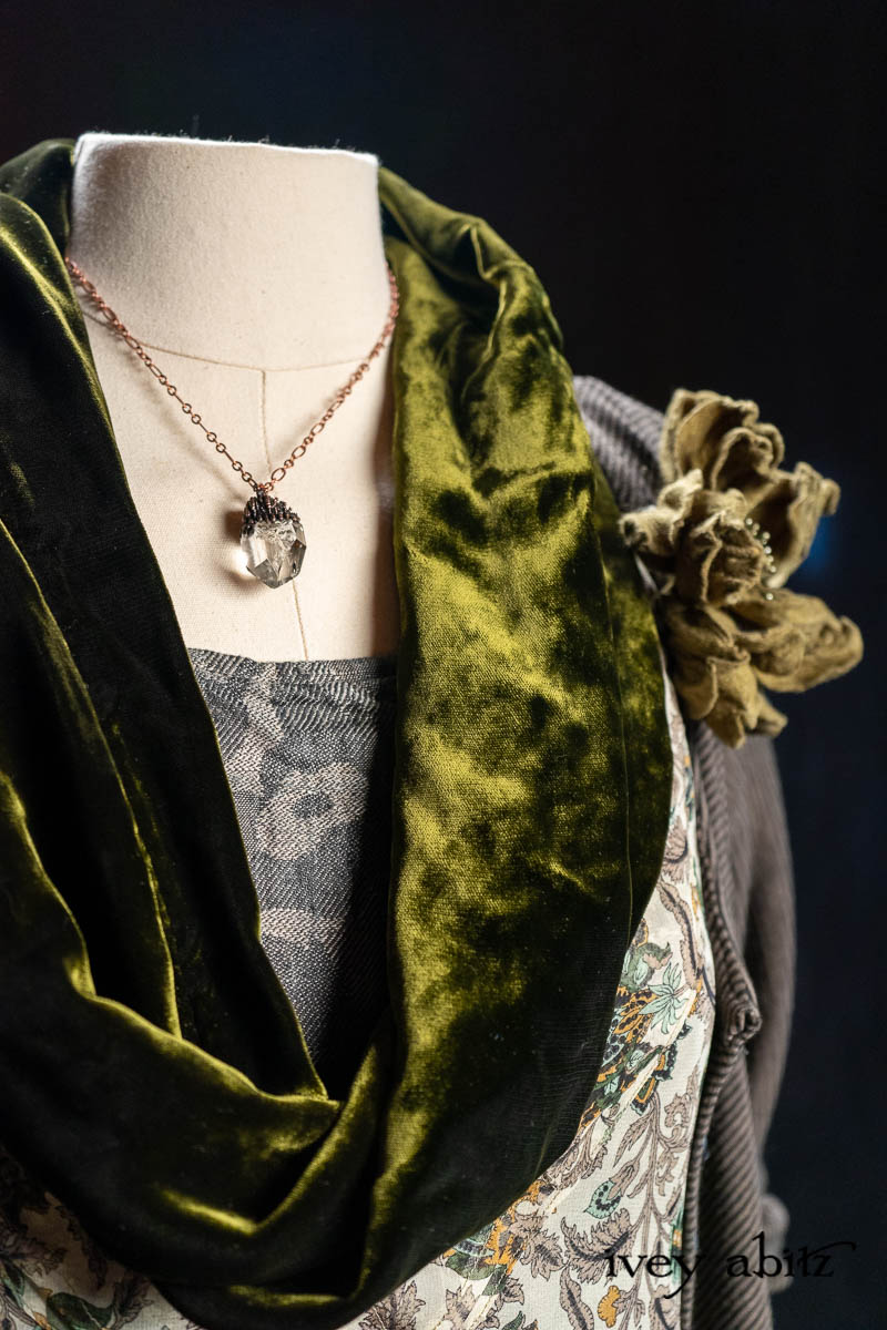 • Baedeker Scarf (Long) in Olive Quartz Silk Velvet