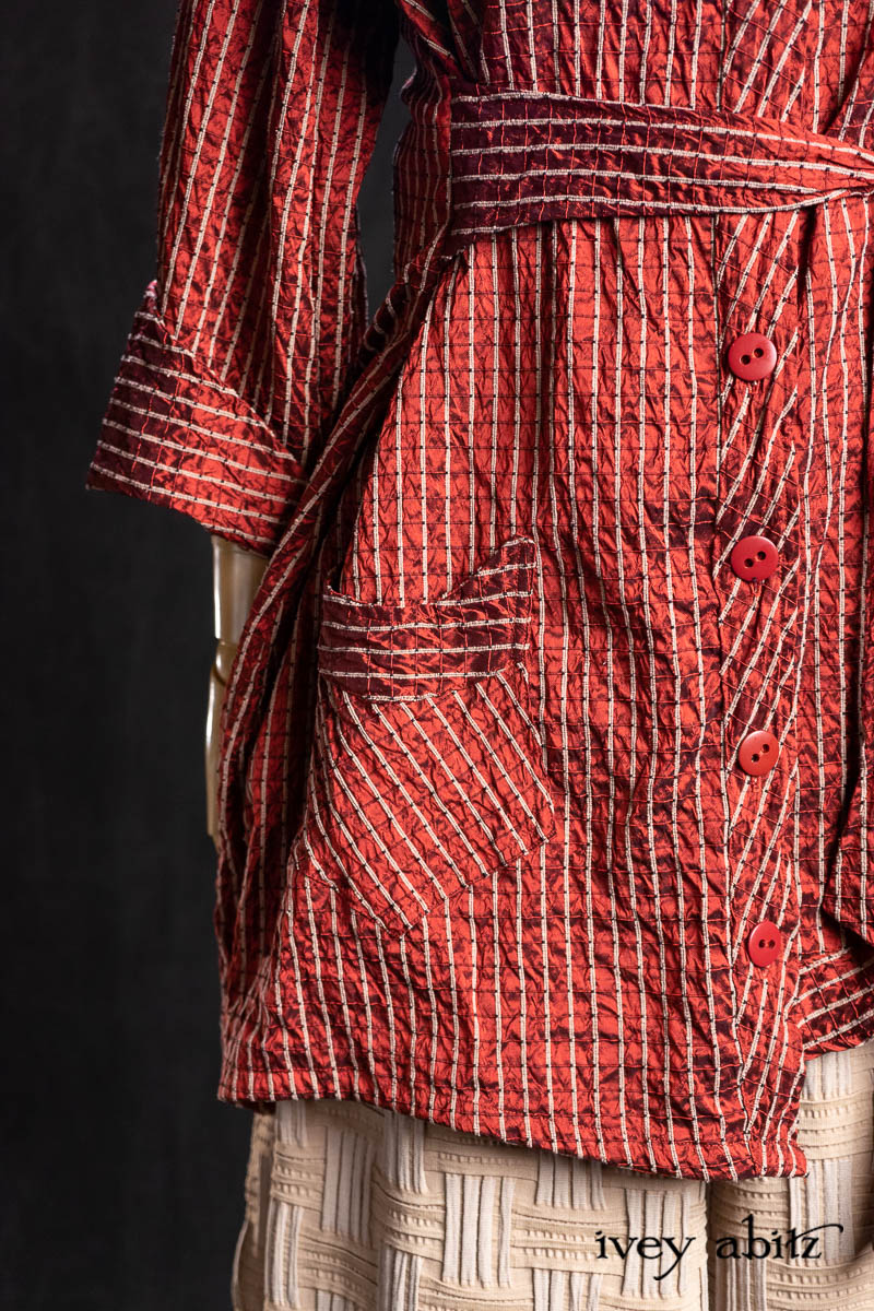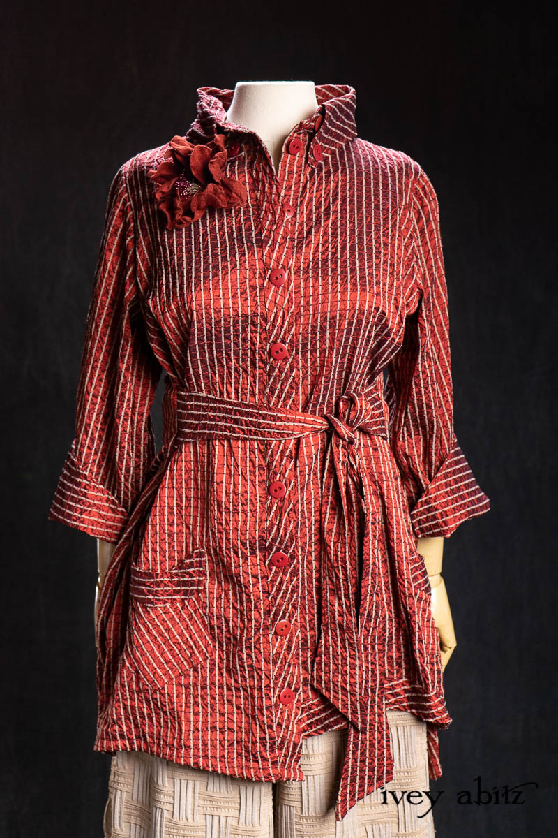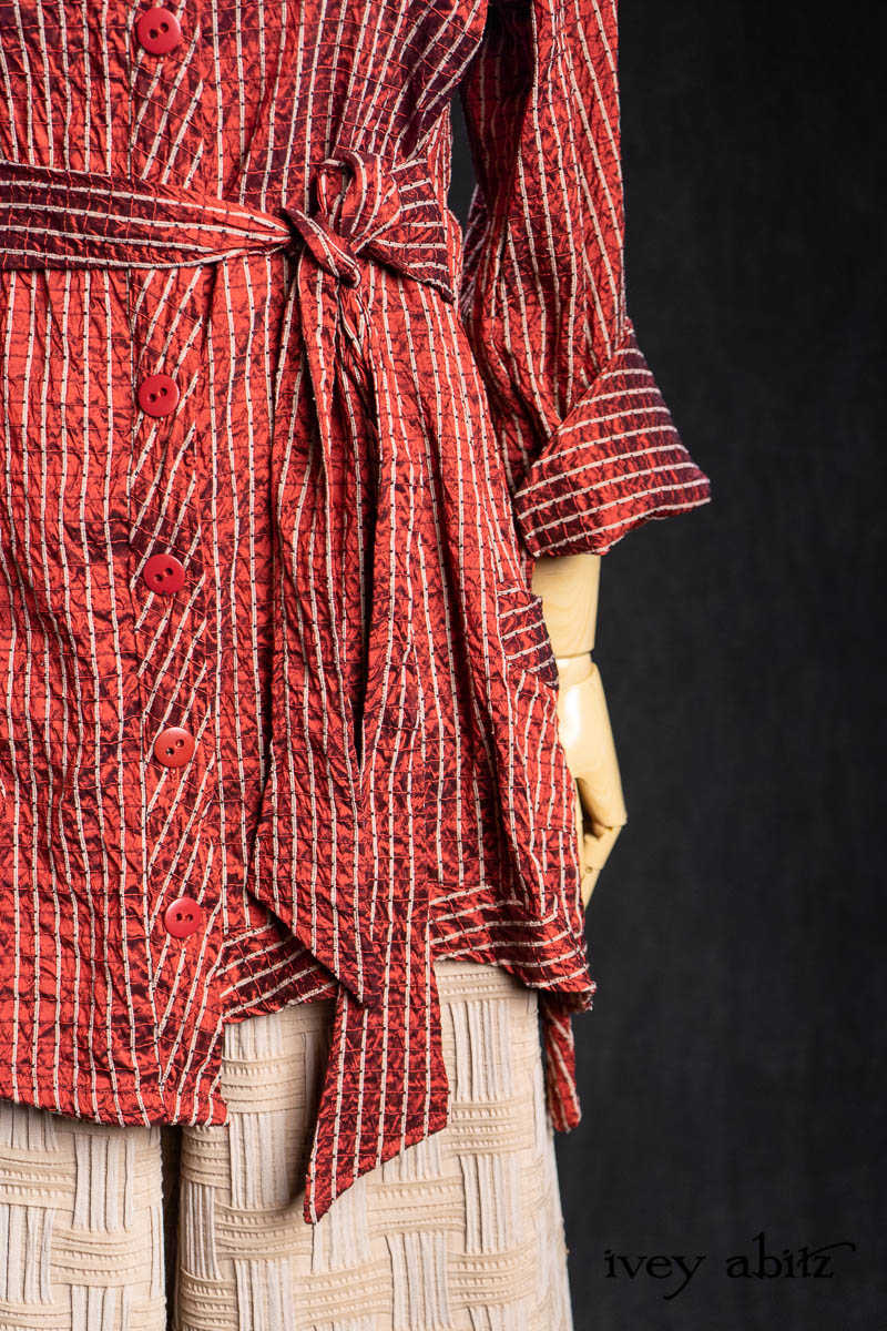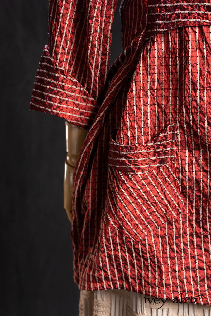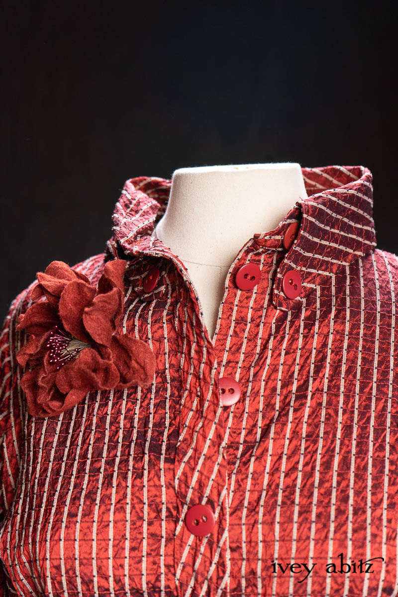 • Highlands Shirt in Ruby Embroidered Stripe Silk