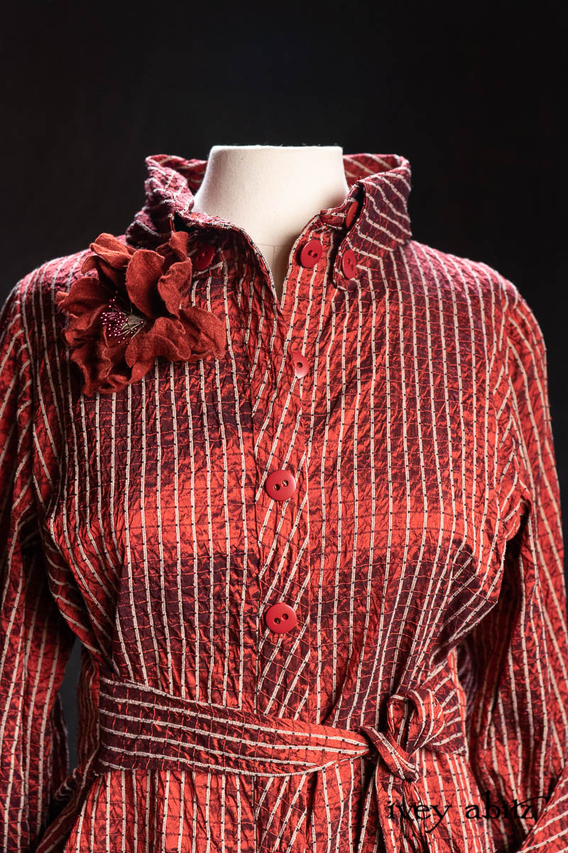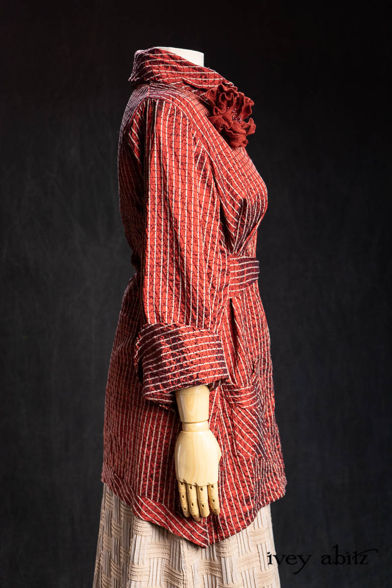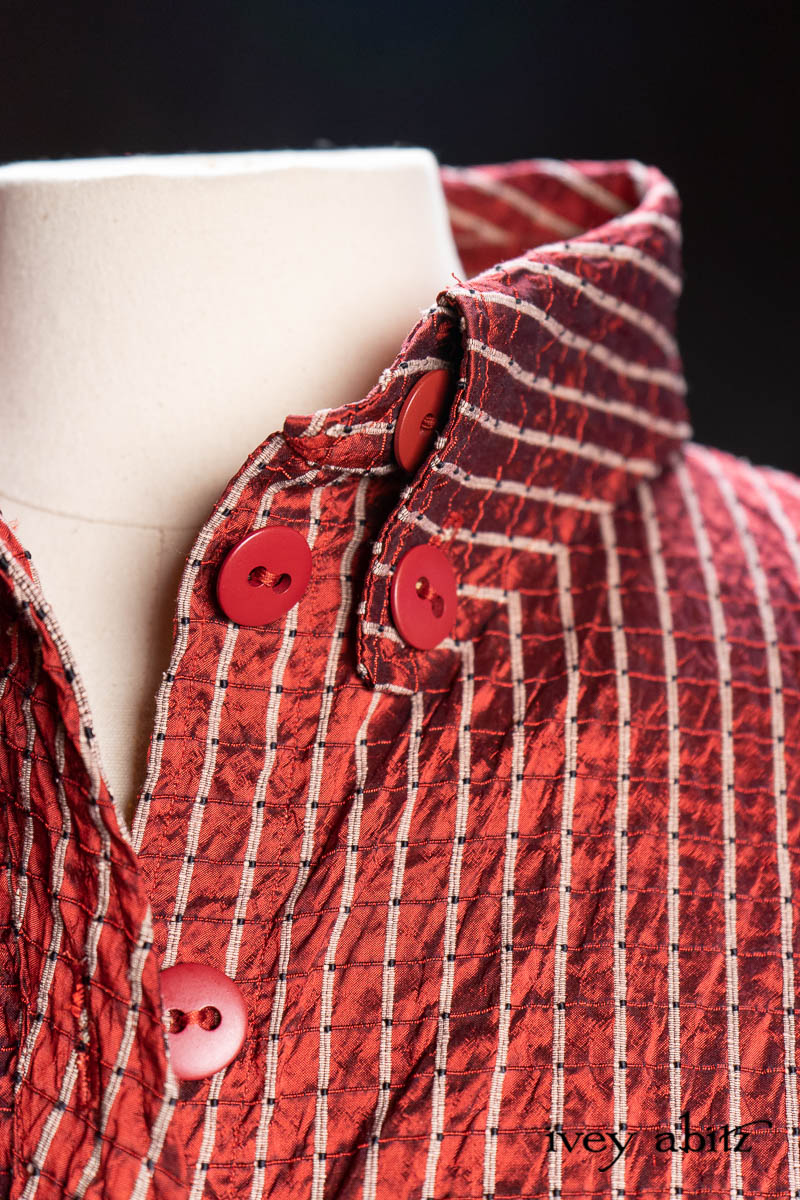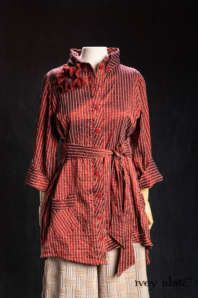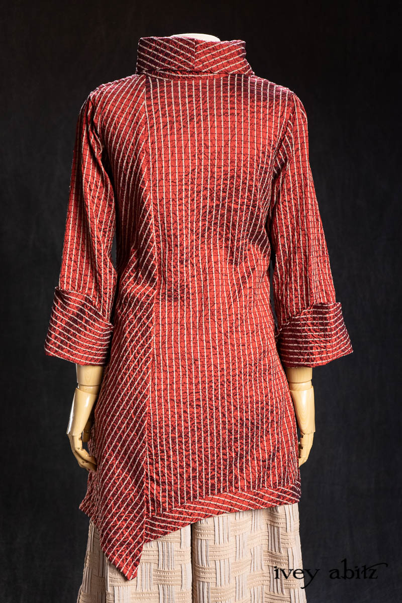 • Highlands Shirt in Ruby Embroidered Stripe Silk