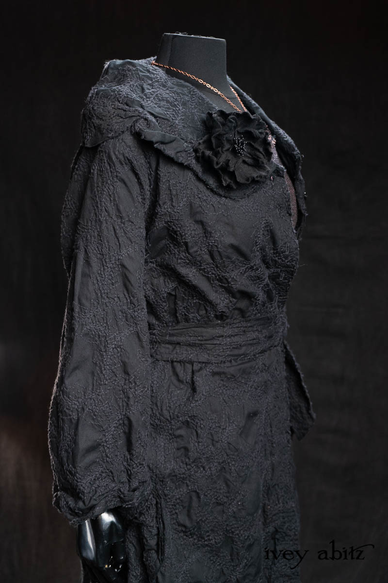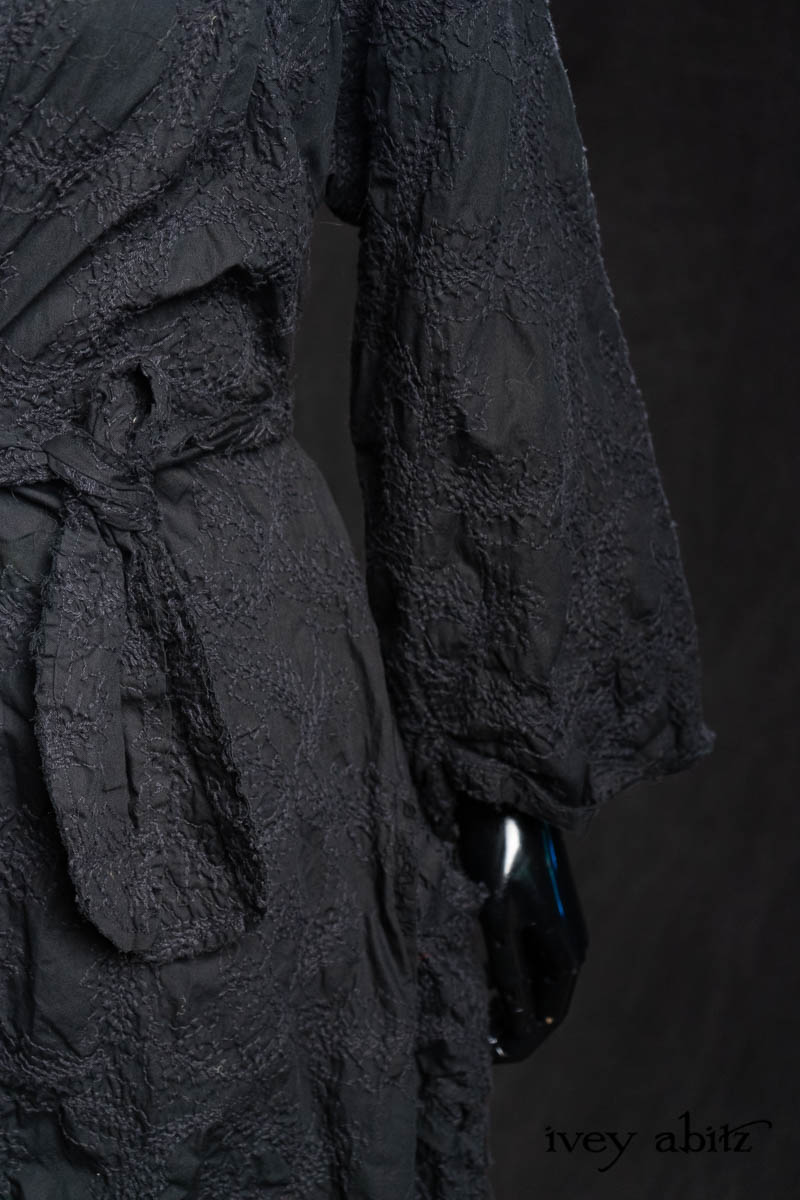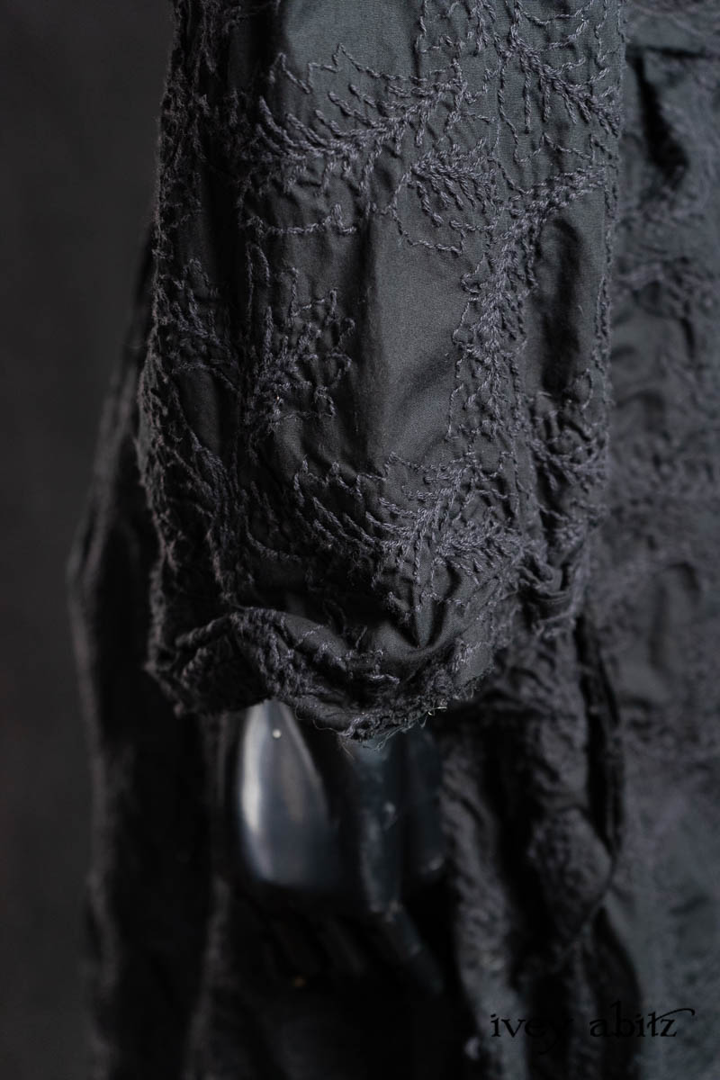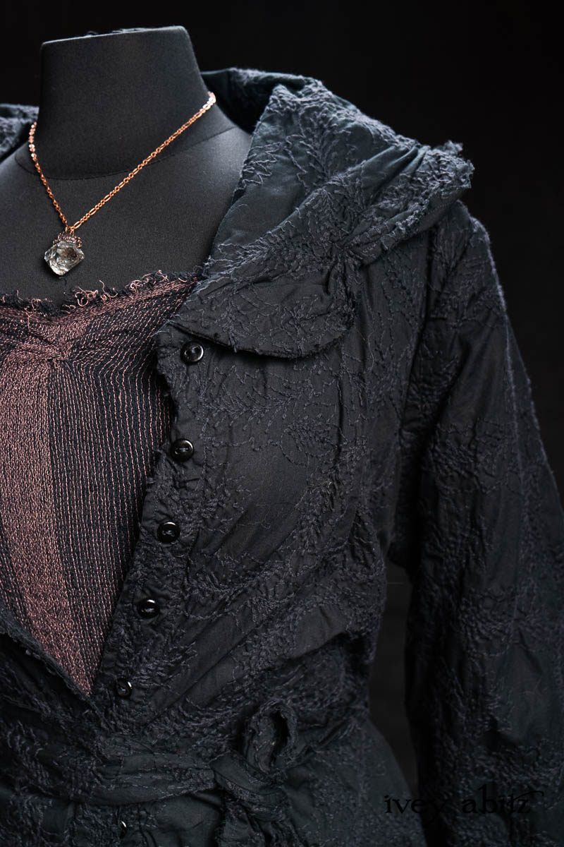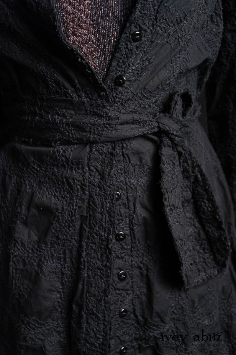 - Celia Duster Coat in Black Diamond Embroidered Leaf Weave
