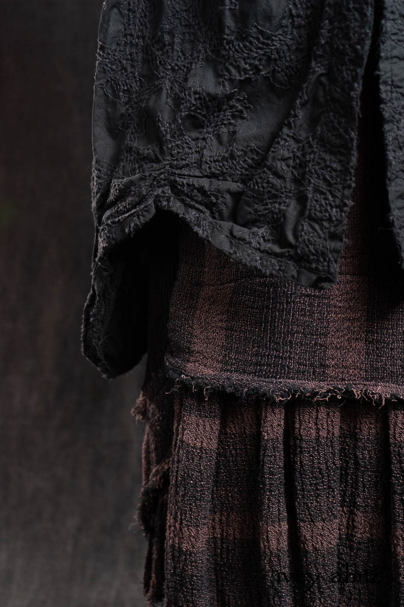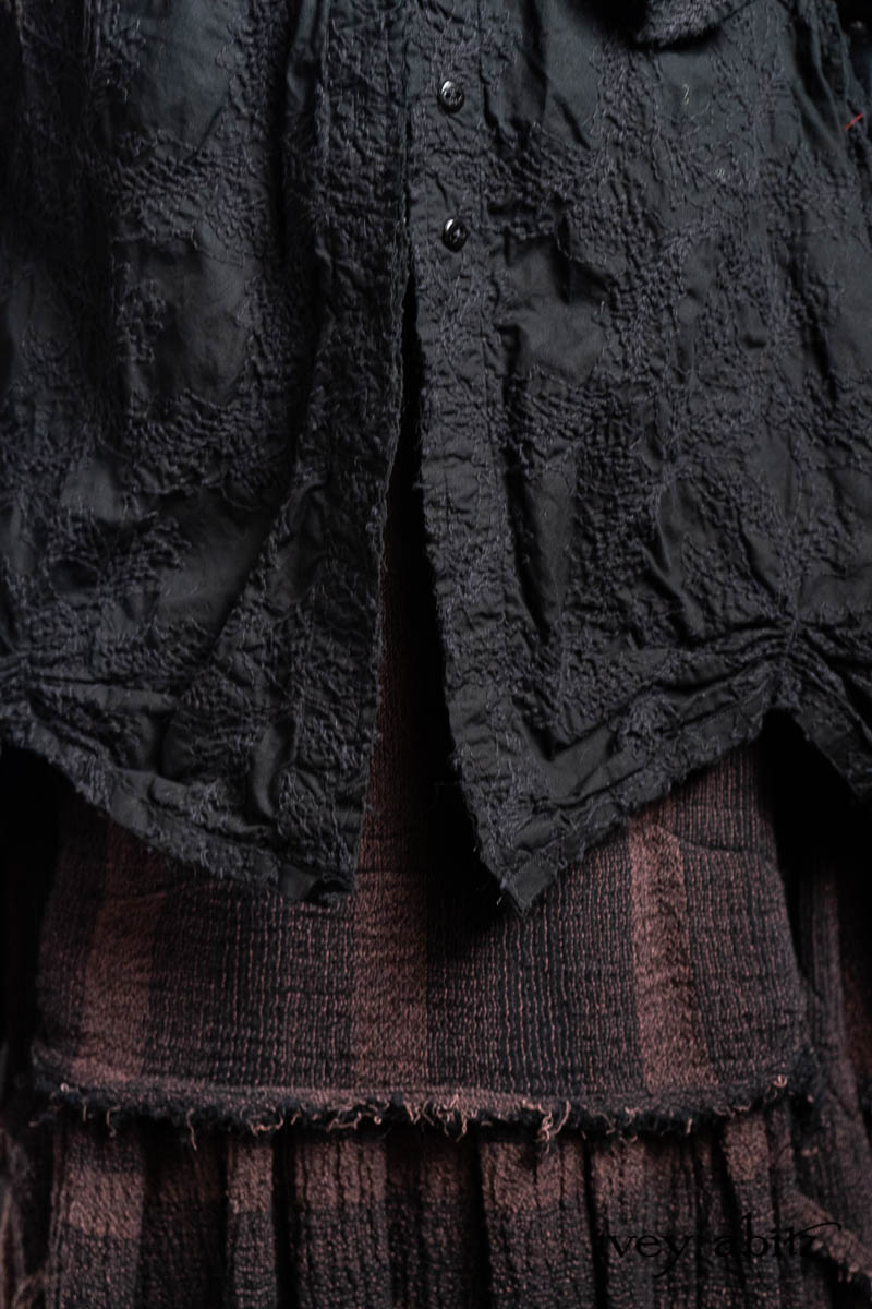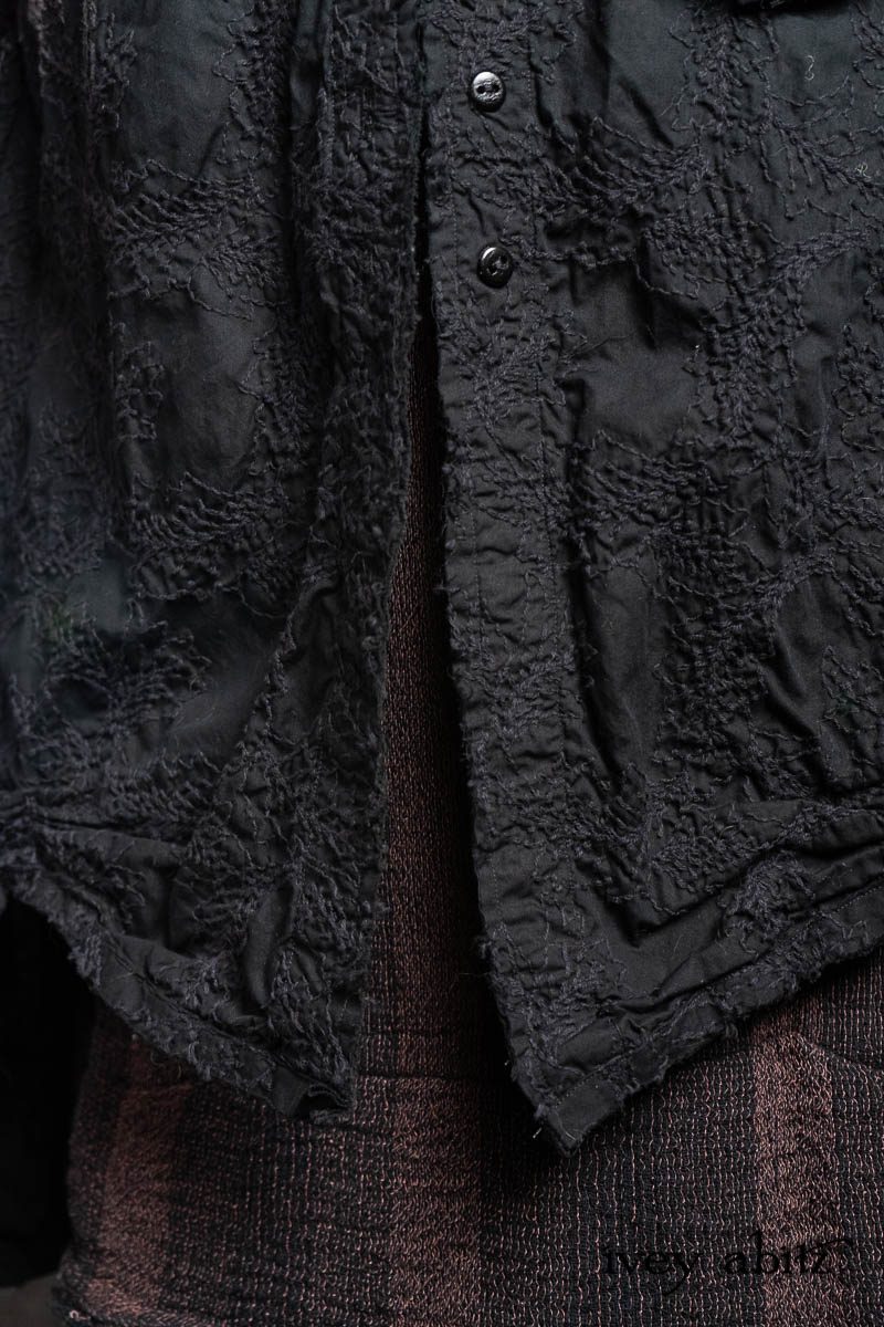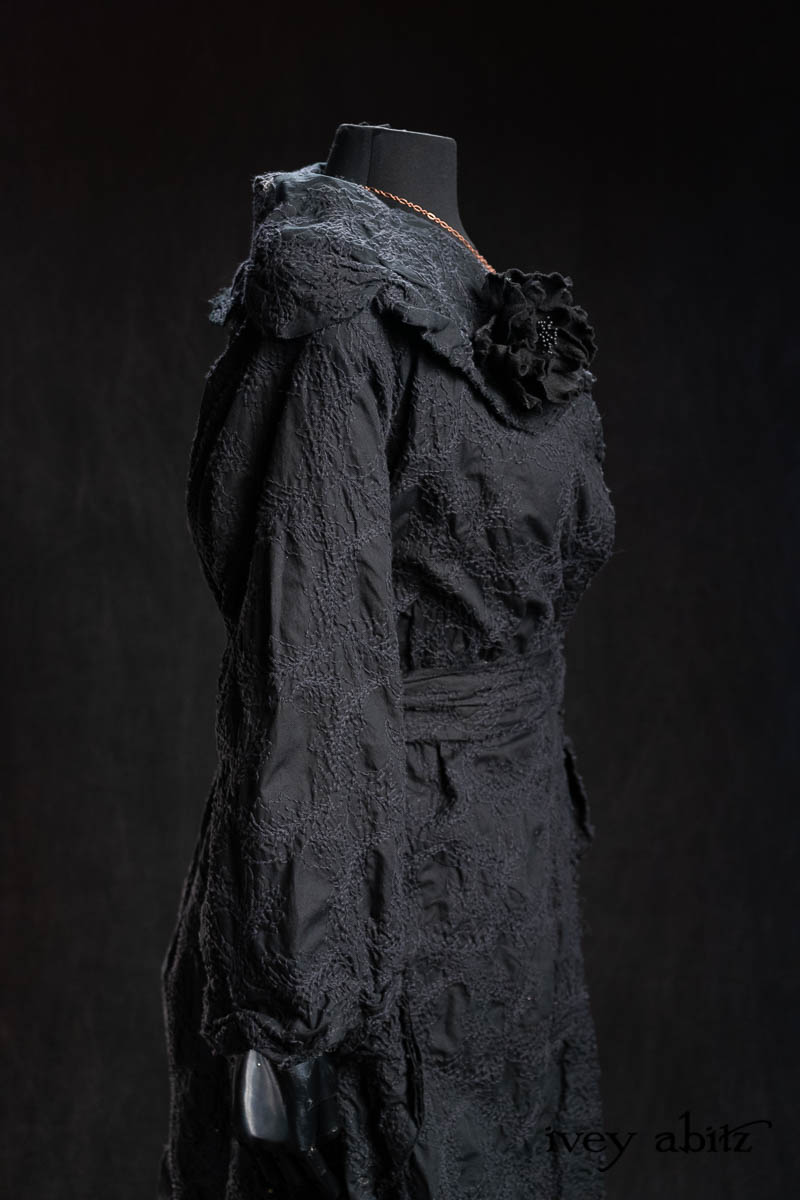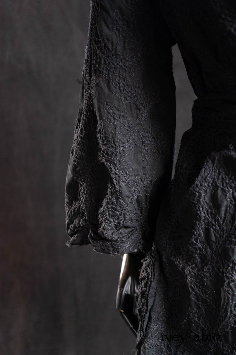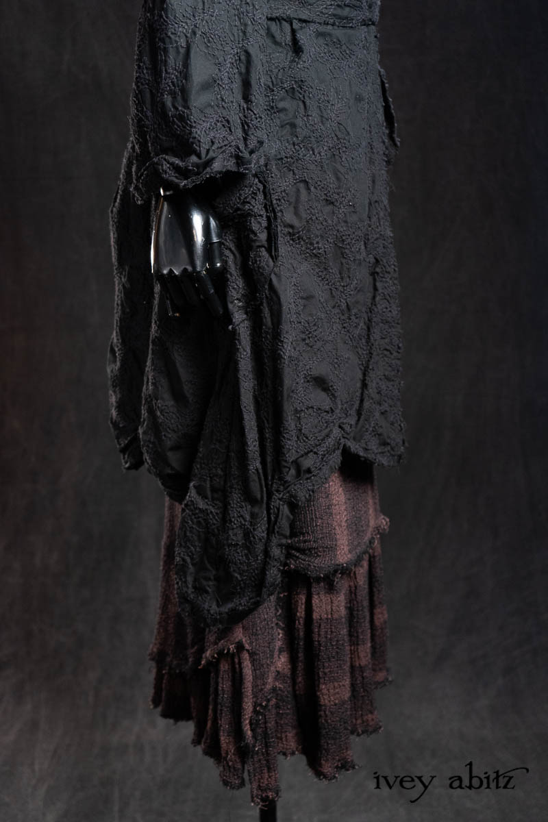 - Celia Duster Coat in Black Diamond Embroidered Leaf Weave