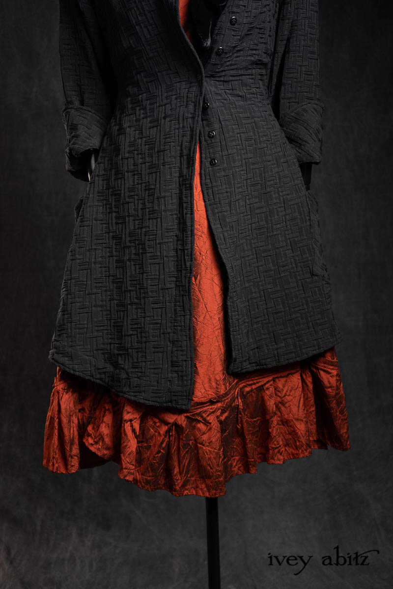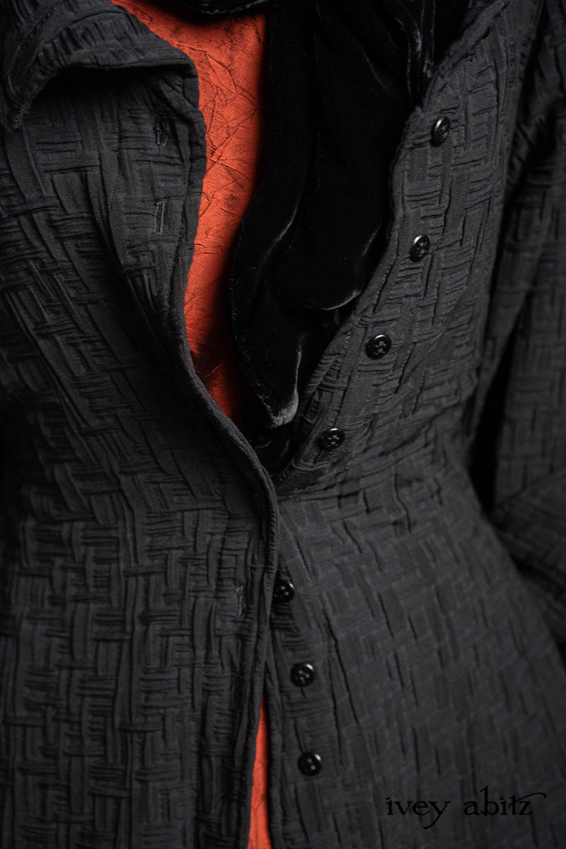 • Chevallier Duster Coat in Black Diamond Heirloom Puckered Stretch Weave