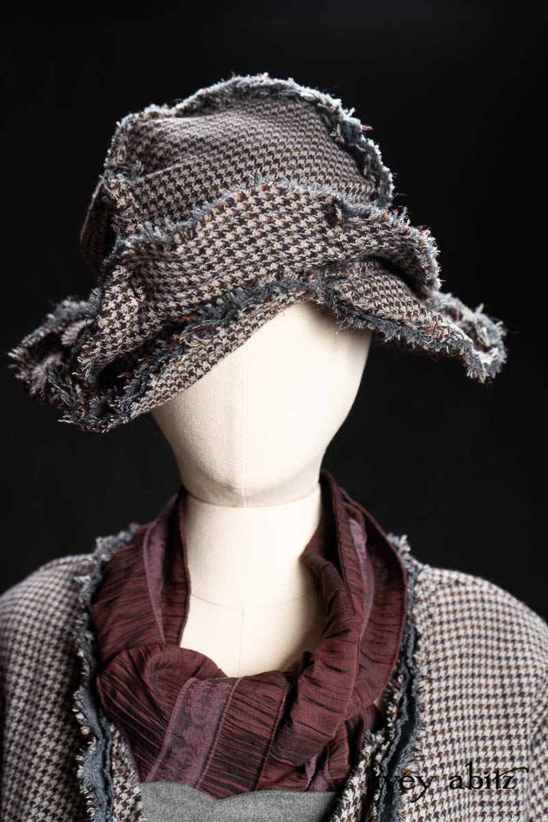 • Bonheur Hat in Pewter and Amethyst Houndstooth Wool