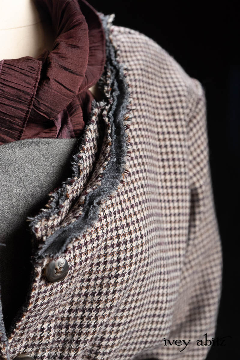 • Bonheur Shirt Jacket in Pewter and Amethyst Houndstooth Wool