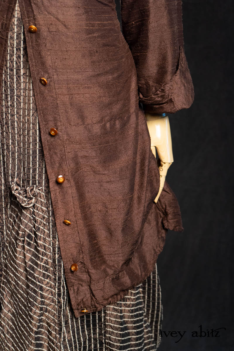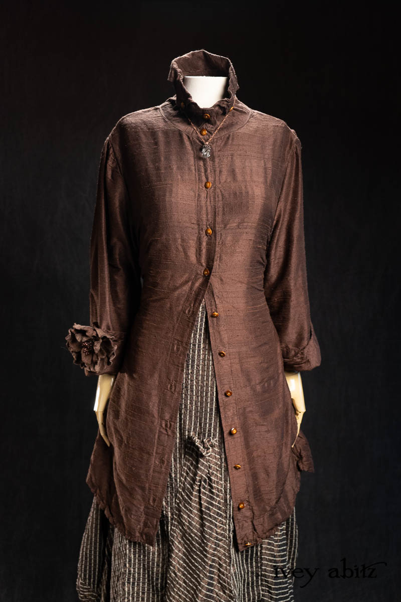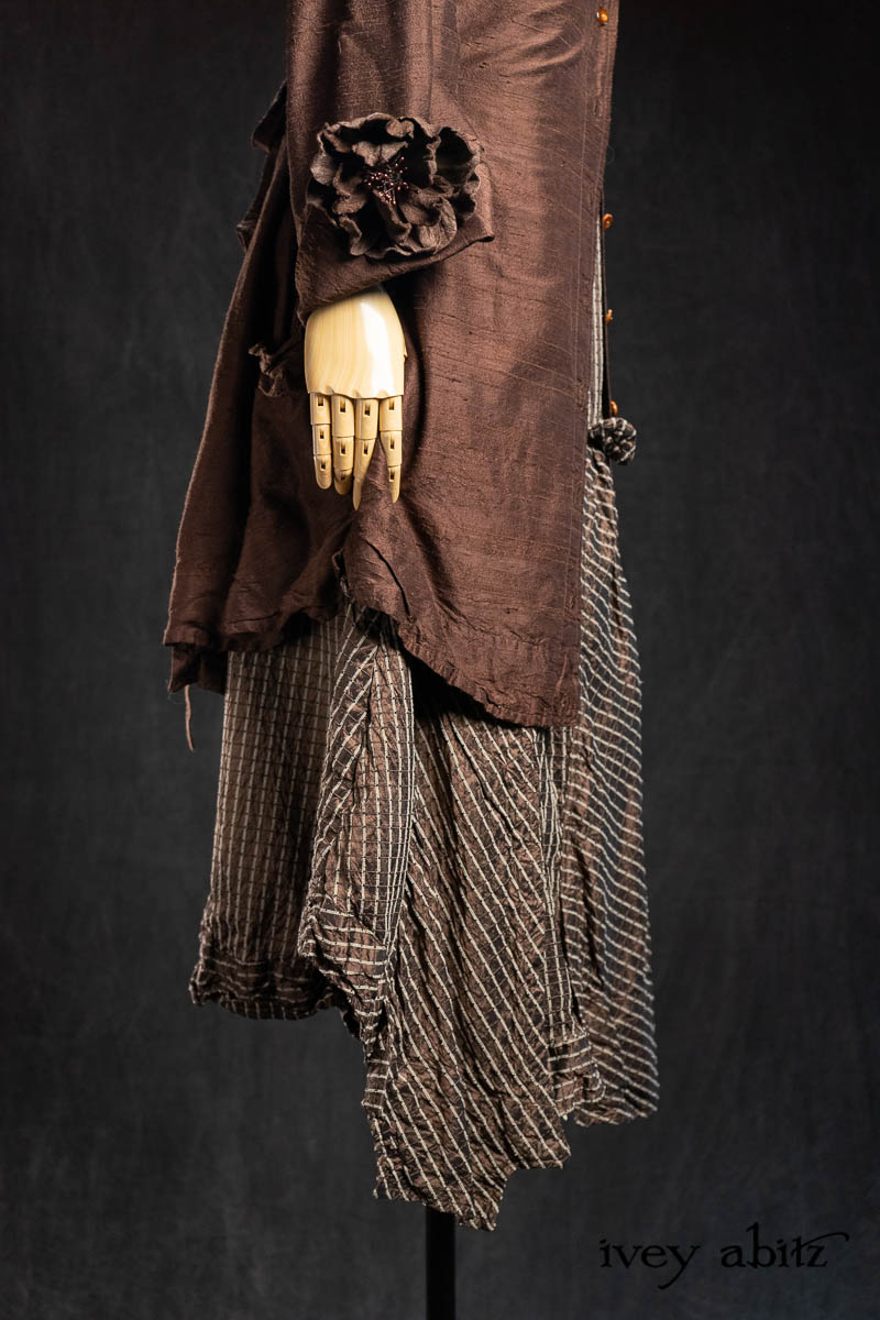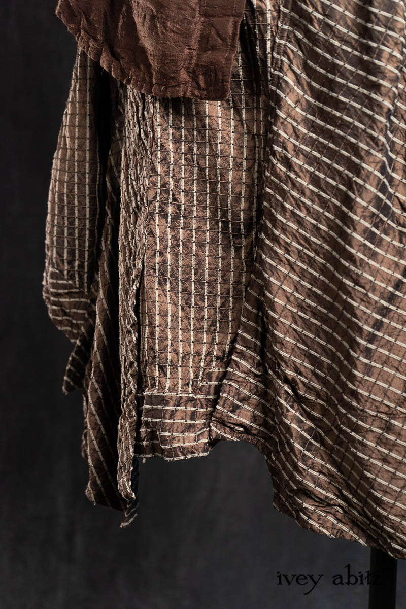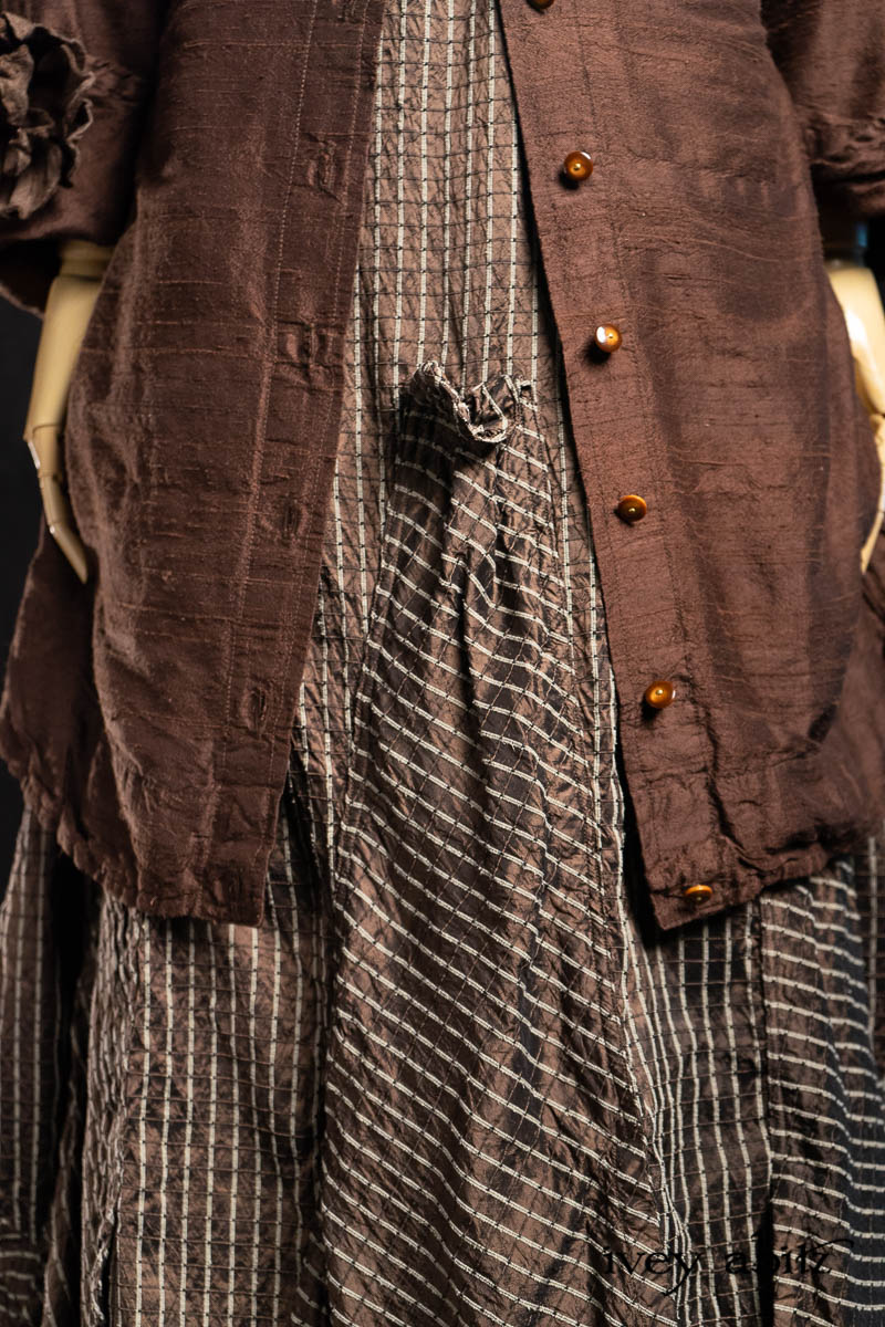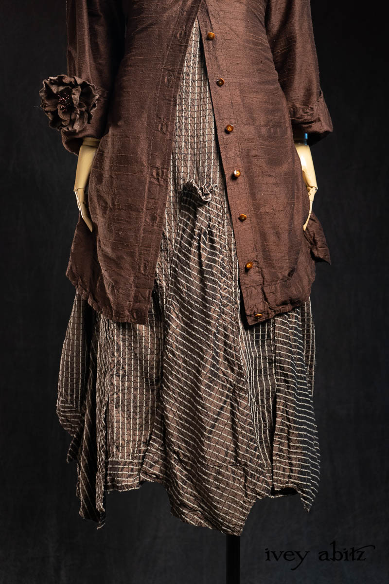 - Furtherafield Frock in Earth Embroidered Stripe Silk