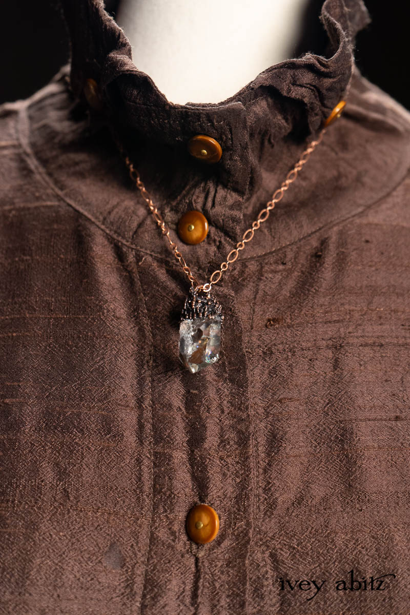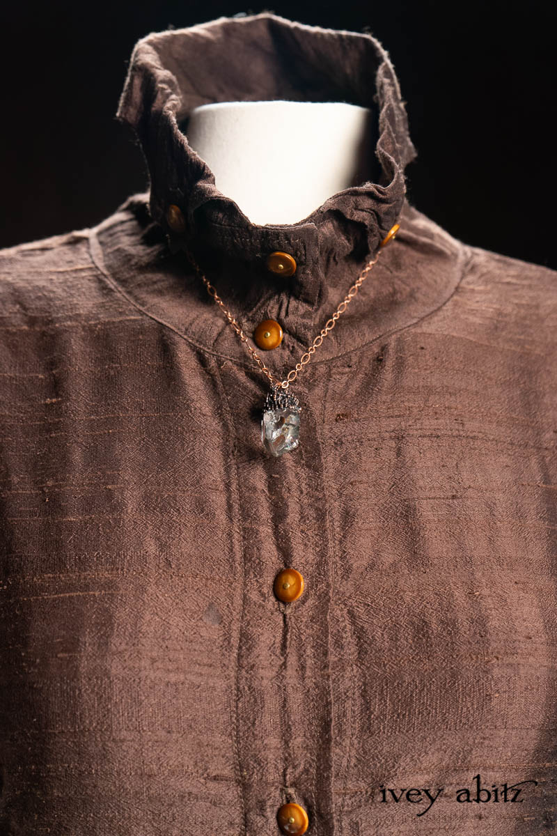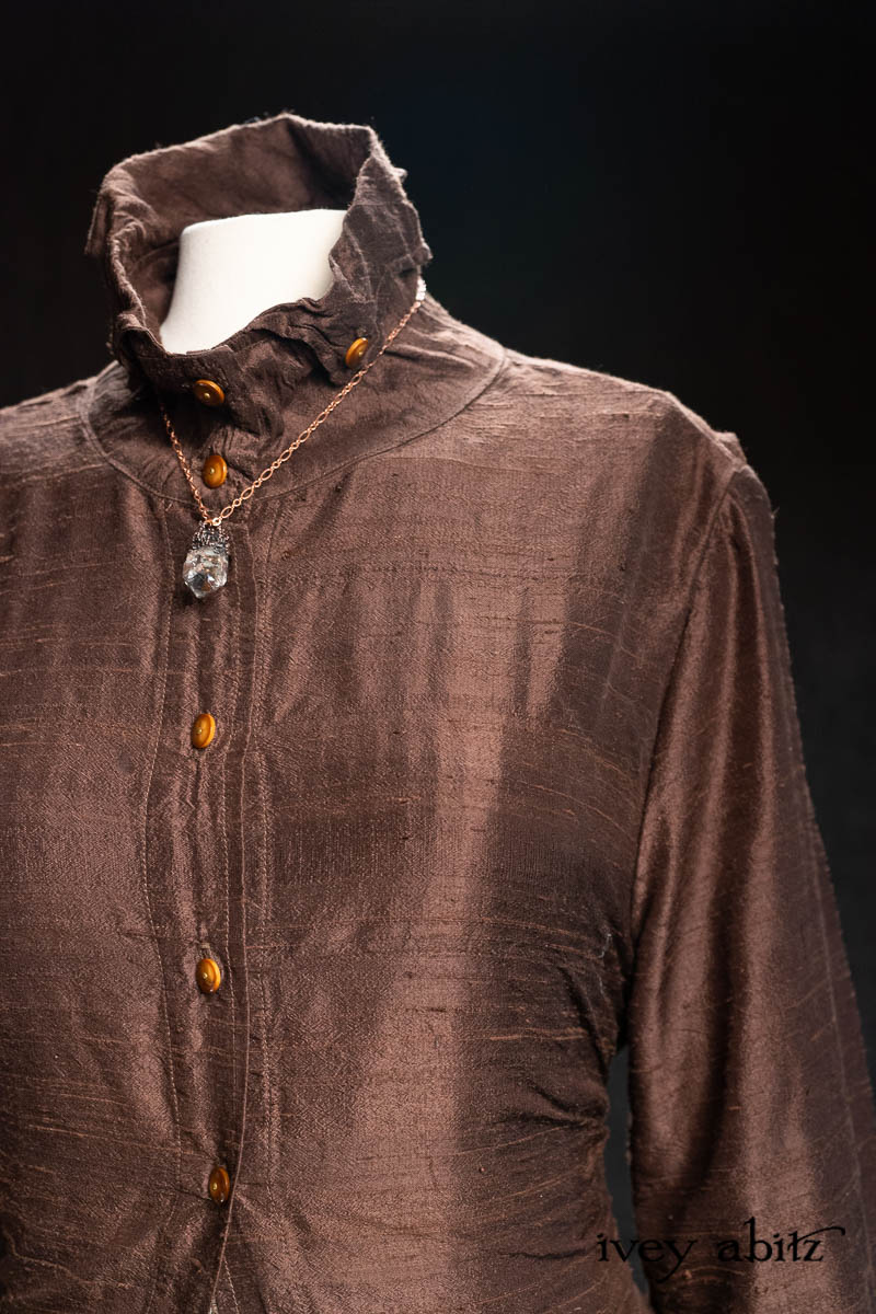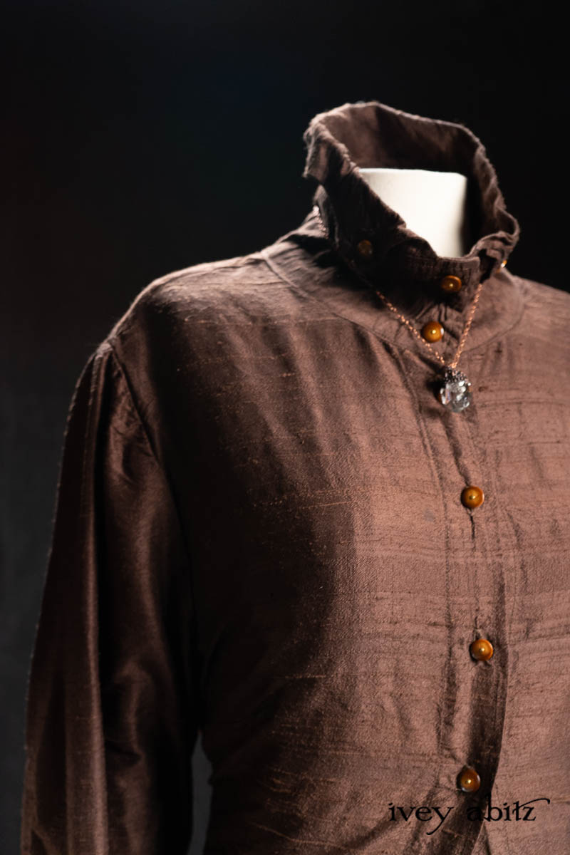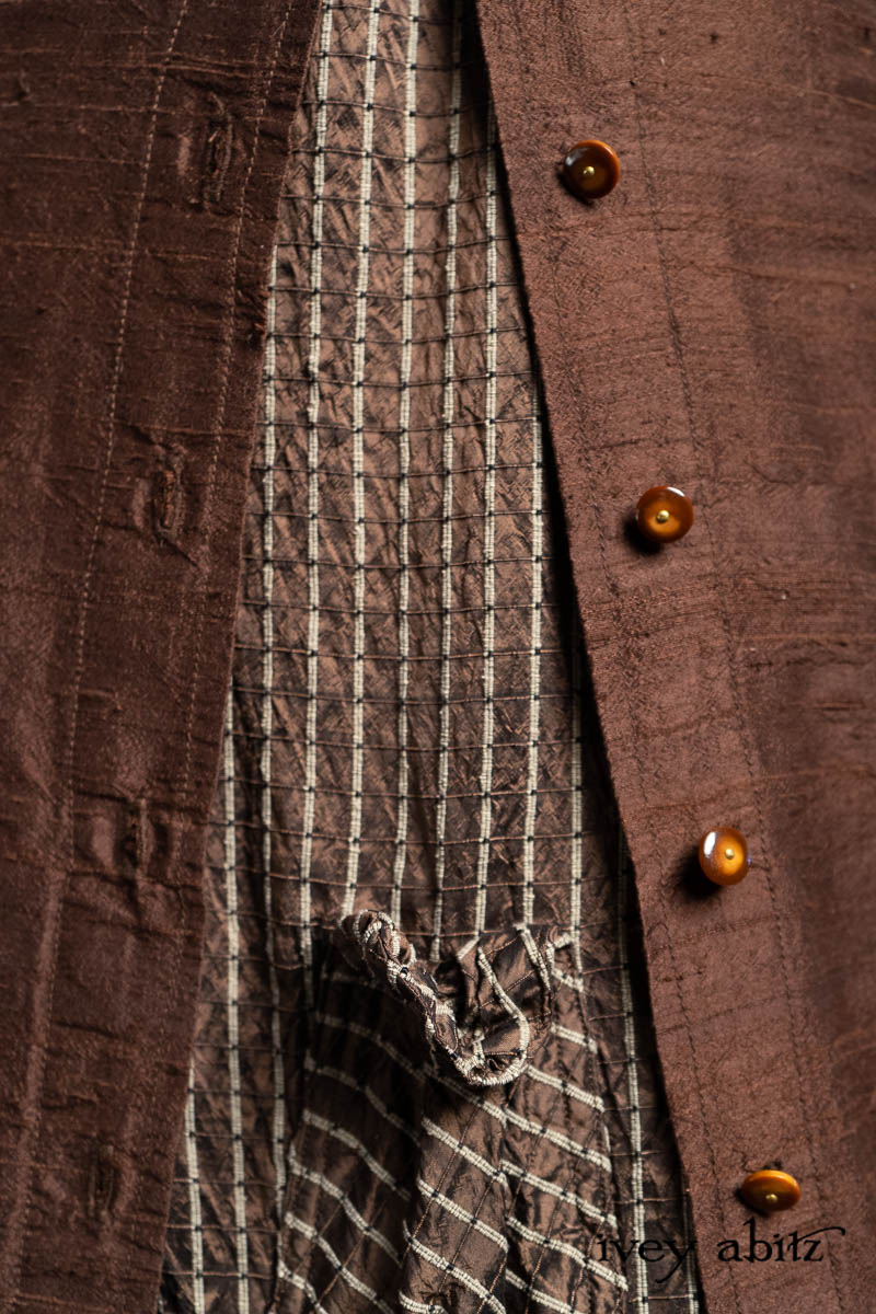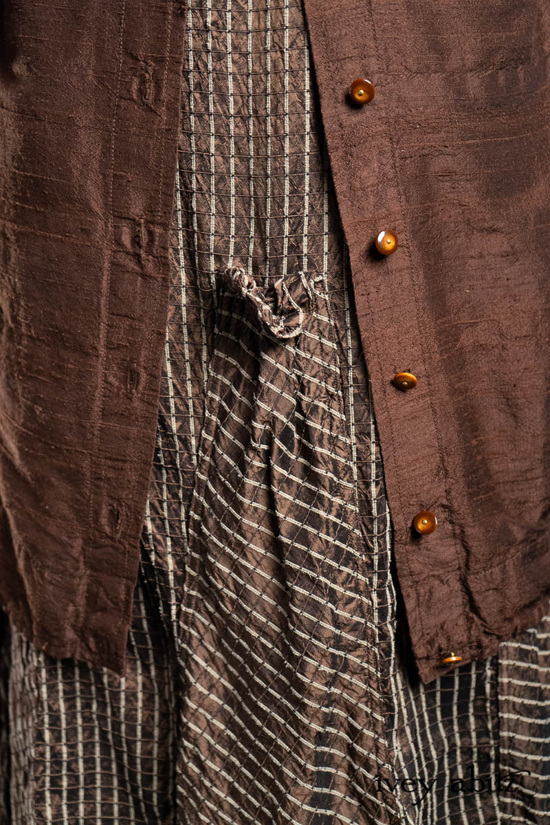 - Furtherafield Frock in Earth Embroidered Stripe Silk