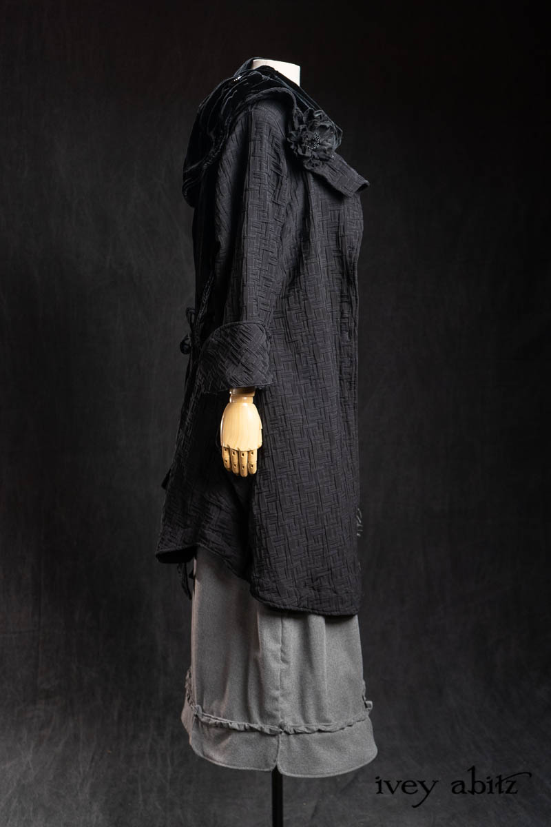 - Chevallier Duster Coat Black Diamond Puckered Stretch Weave