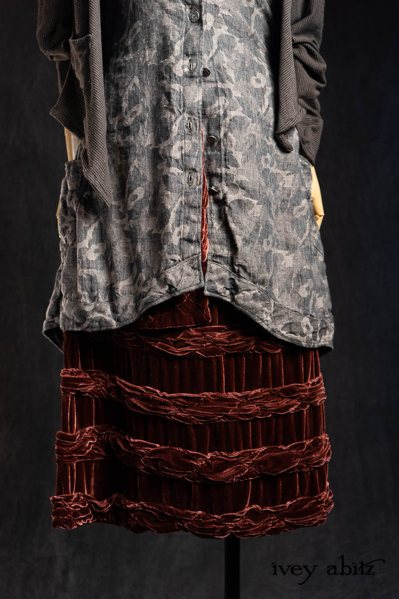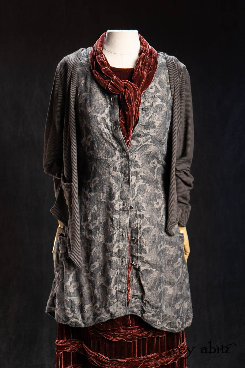 - Truitt Frock in Pewter and Stone Floral Linen