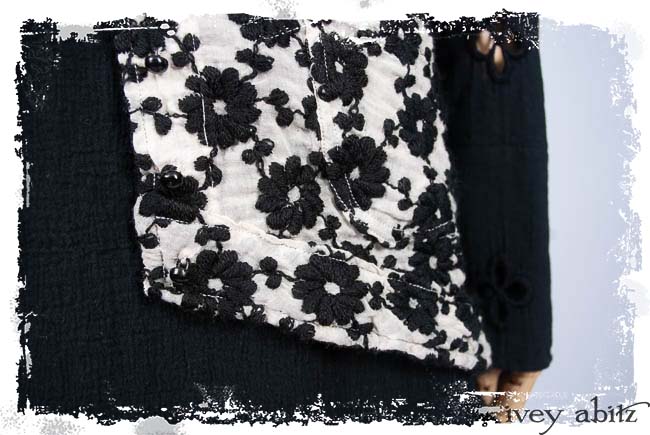 - Truitt Vest in Black and Gardenia Crewel Work on Voile
