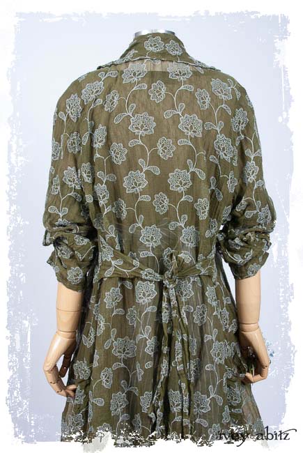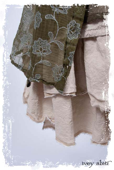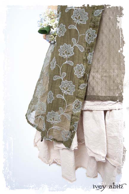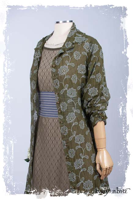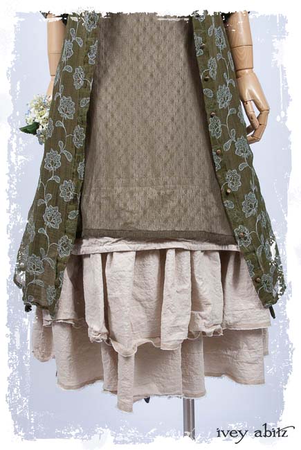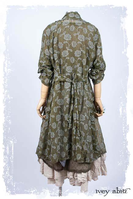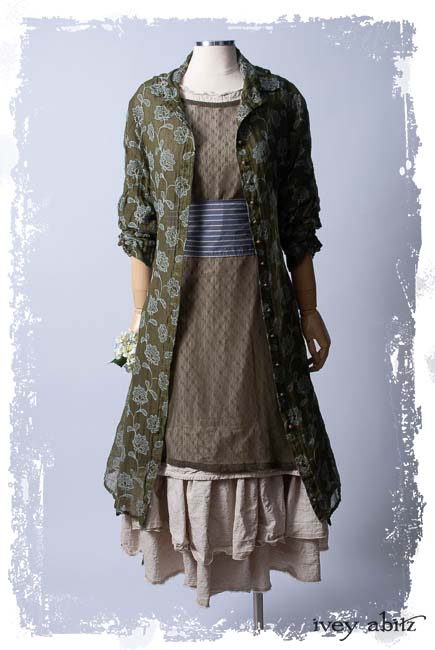 Look 20: Coulson Coat Dress in Flora Embroidered Gauze; Wildefield Dress in Flora Netted Lace; Fairholme Sash in Lavender Blue Sky Stripe Poplin; Limited Edition Trelawny Frock in Gardenia and Sand Washed Stripe. Ivey Abitz Spring Summer 2019