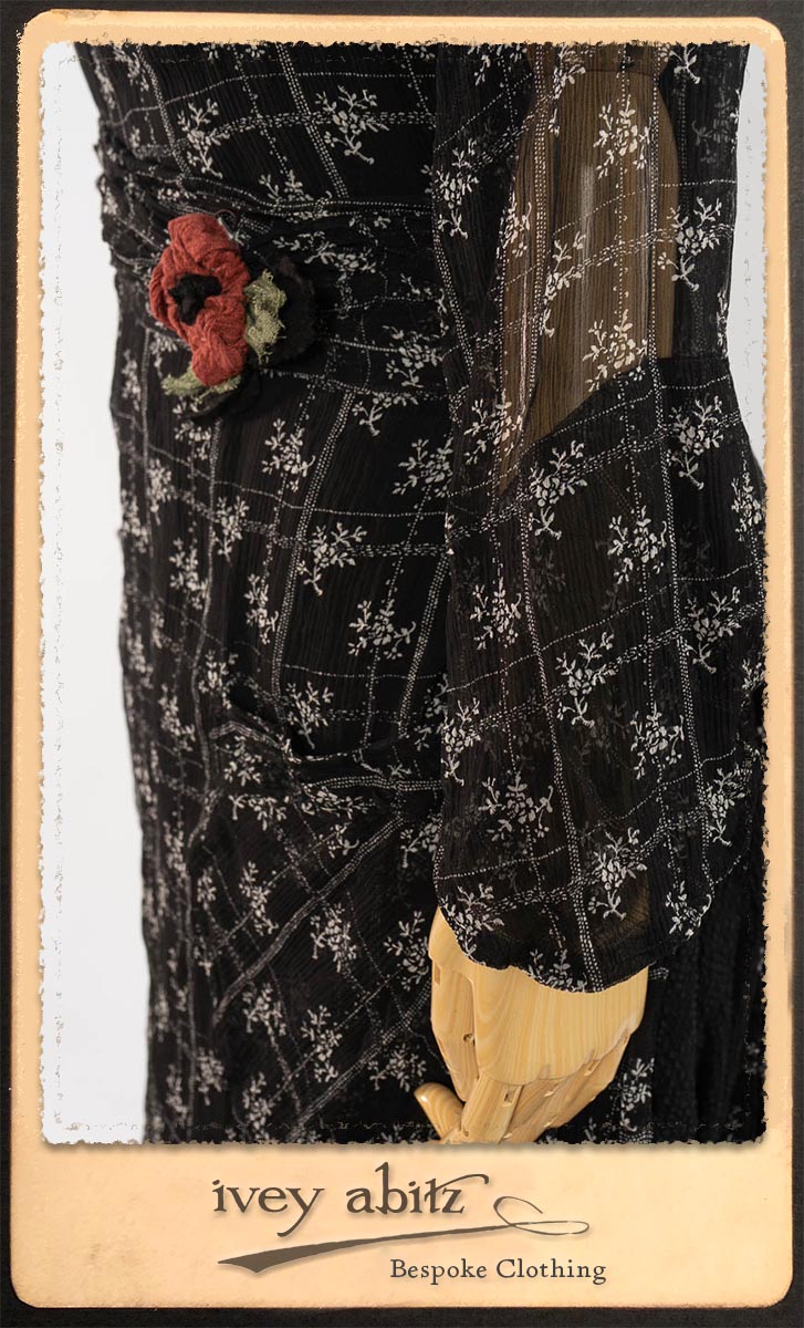 - Bramley Dress in White on Black Floral Silk Chiffon