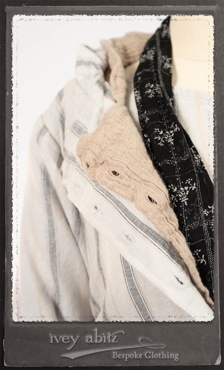 Ivey Abitz bespoke clothing is made in the USA just for you as you order. Scroll down for detailed photos.