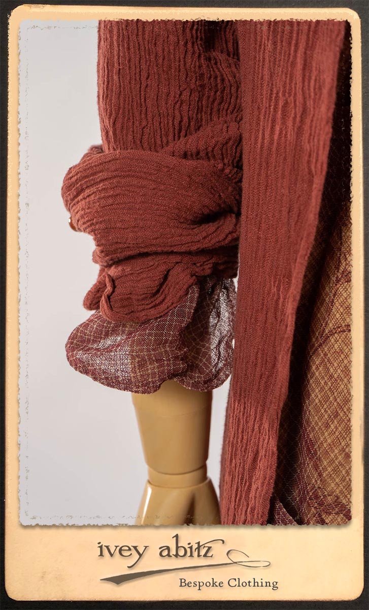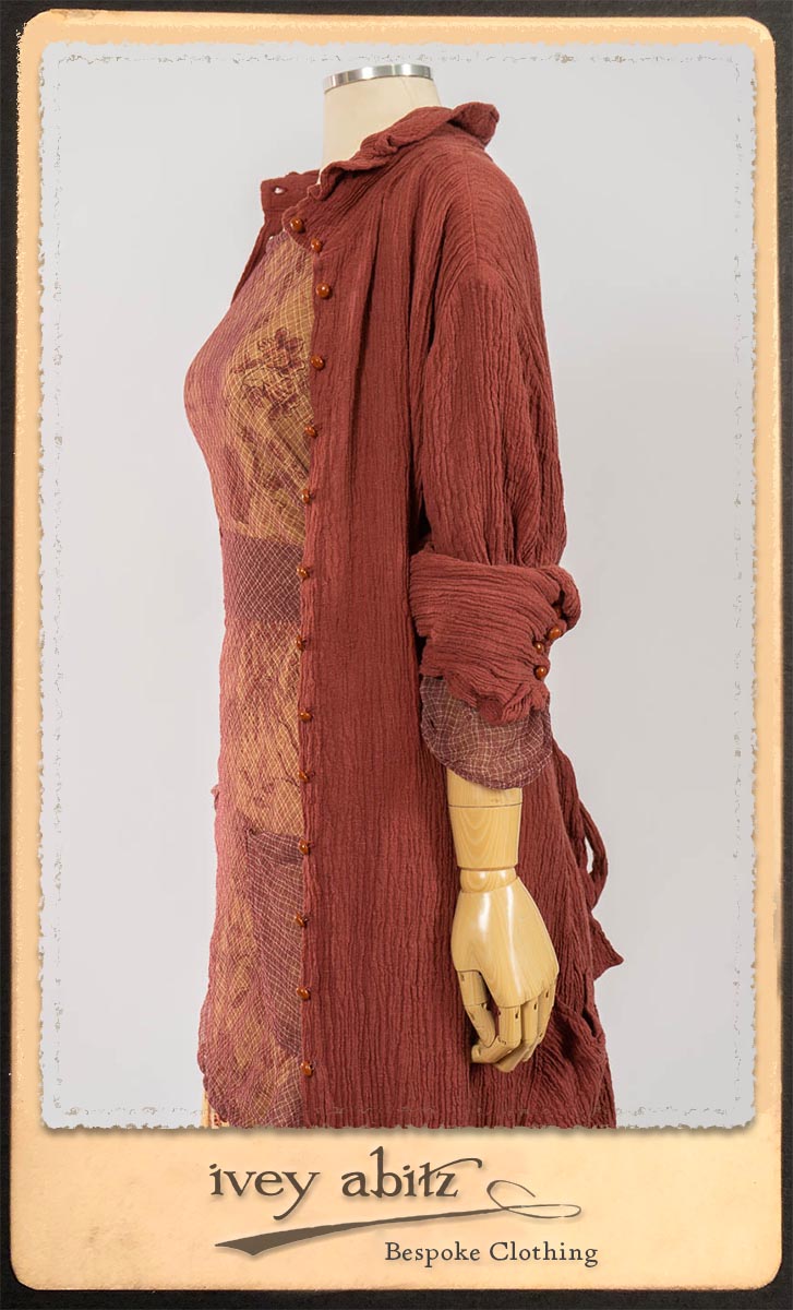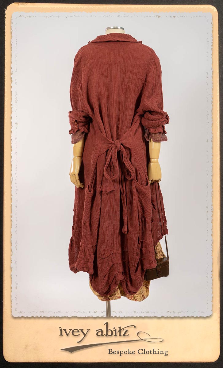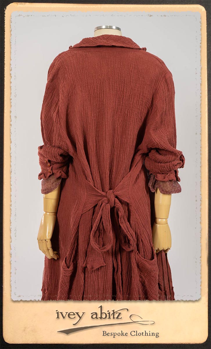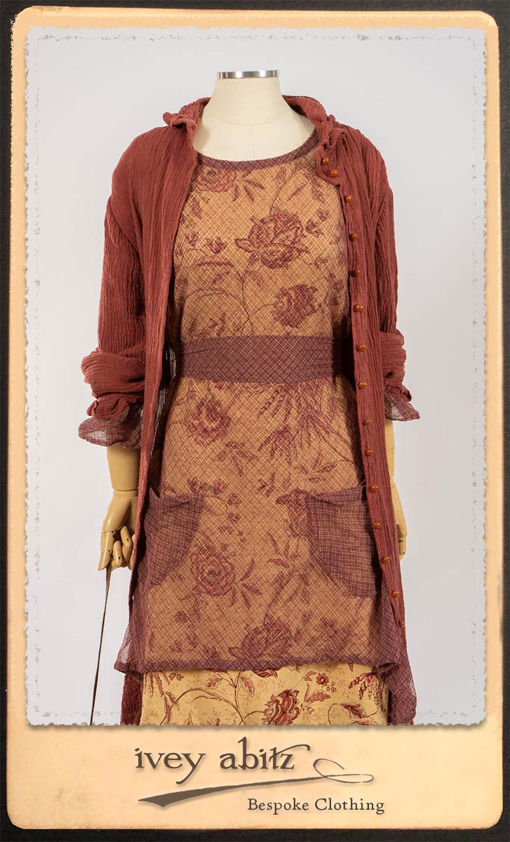 Scattergood Duster Coat in Rosy Washed Crinkled Linen; Lorrilard Dress in Rosy Argyle Netting; Scattergood Frock in Rosy Washed Floral Linen. By Ivey Abitz.