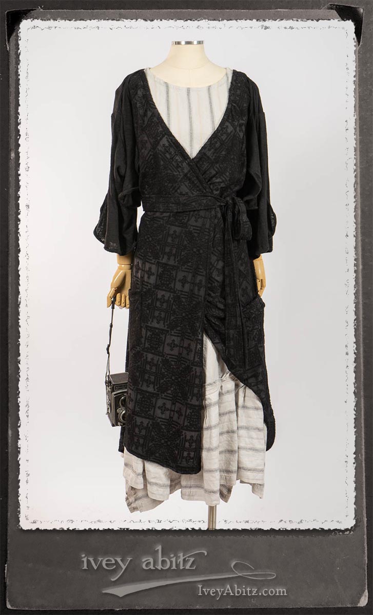- Chomley Frock in Black Embroidered Voile Pinned Back to Side Pocket